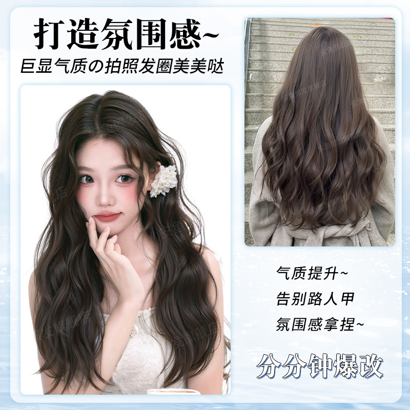 挂耳染发片卷发挑染假发片女一片式隐形彩色接发贴片蓬松漂染长发