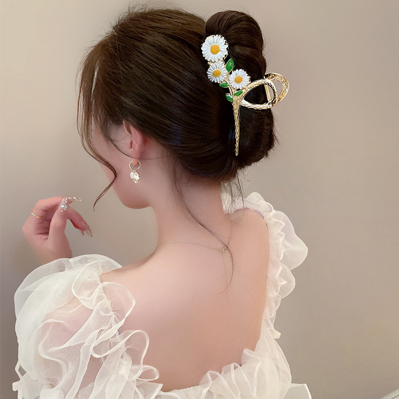 三朵小雏菊金属抓夹精致发抓碎发夹鲨鱼夹子