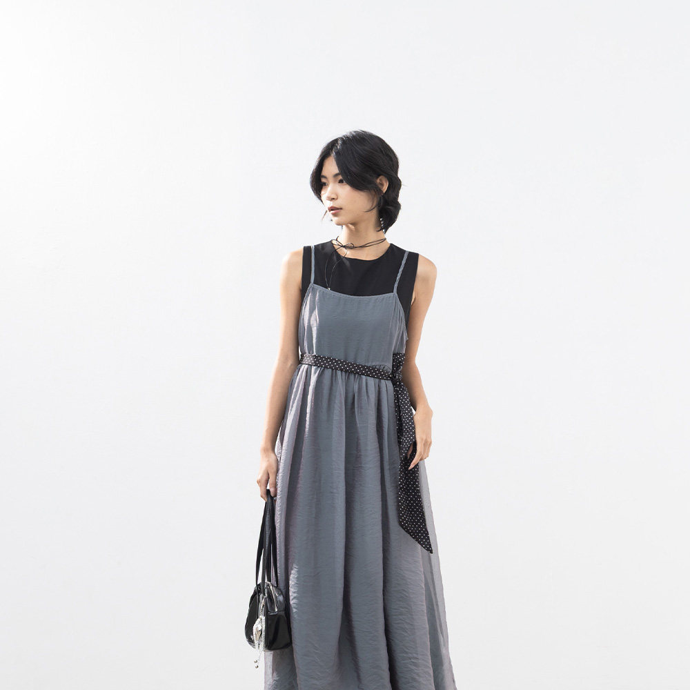 半练带胸垫裙子吊带裙白色连衣裙秋季流行长裙小个子黑色背心裙女