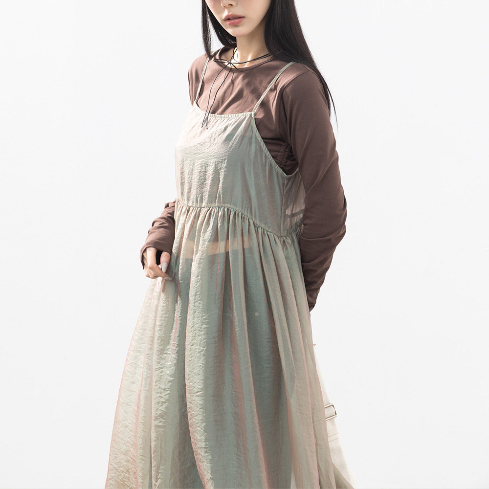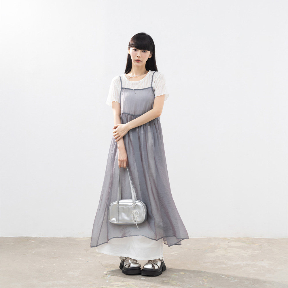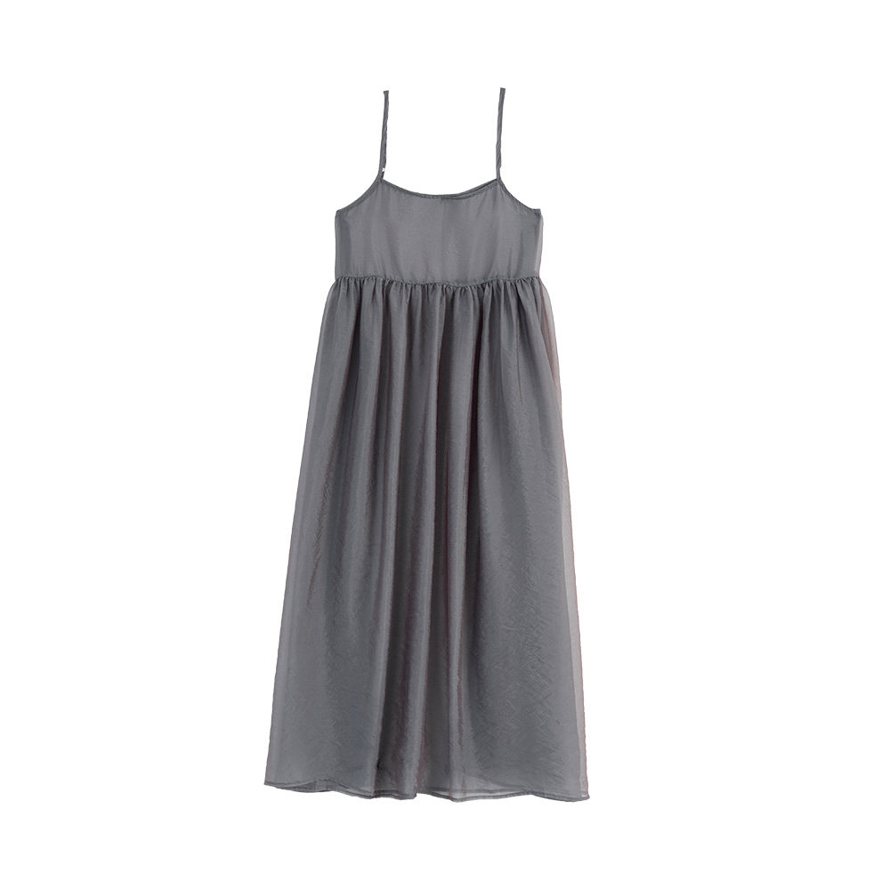 QUEENSHOP 2025秋冬新品女装微光泽透肤细肩长罩衫连衣裙01087142