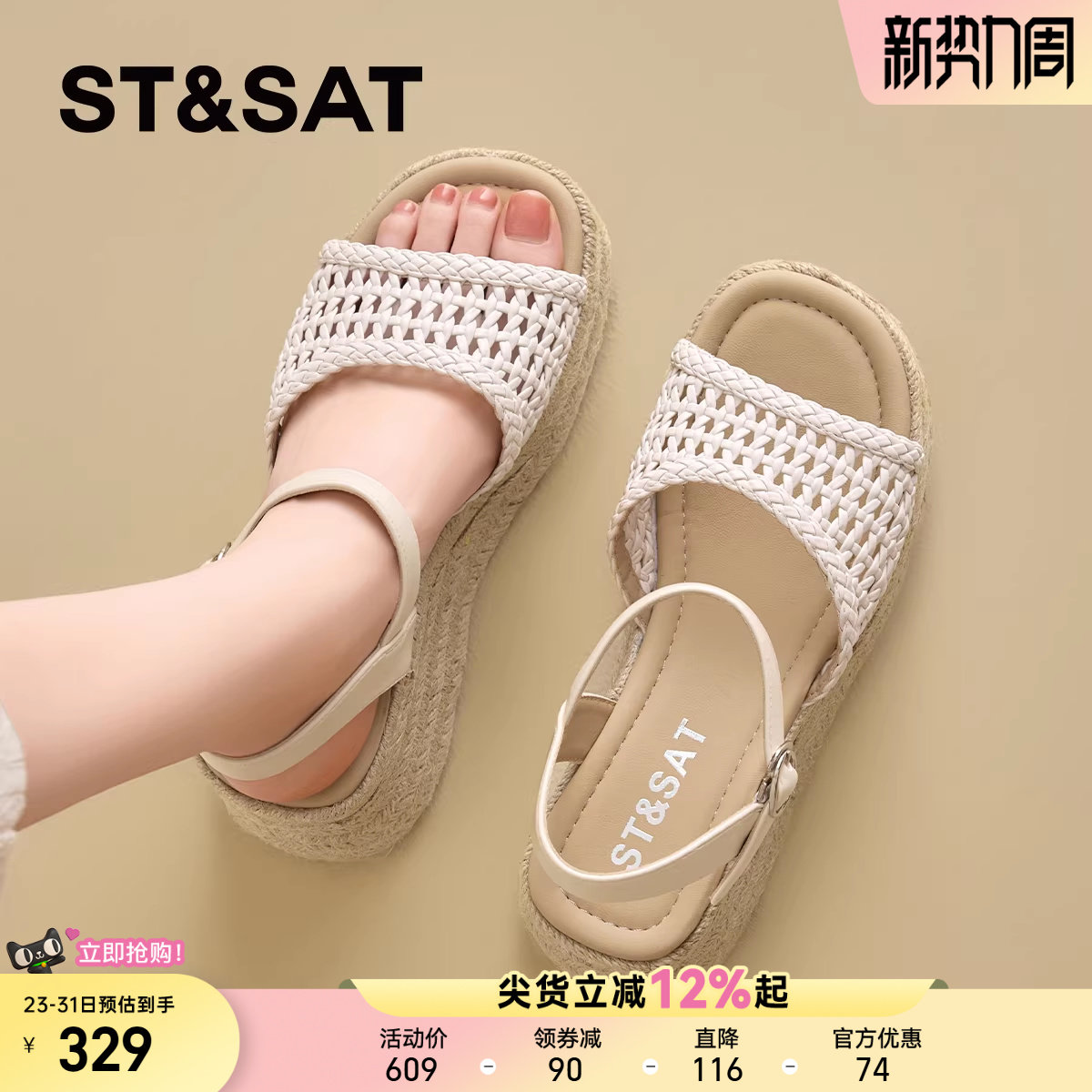星期六编织凉鞋女2025夏季新款镂空露趾坡跟沙滩鞋小个子增高7CM