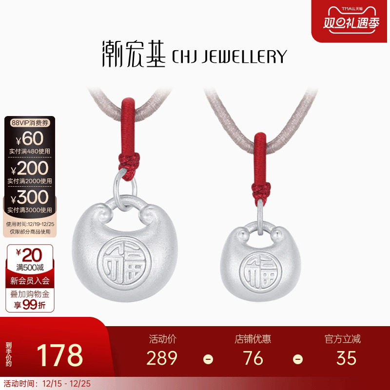 潮宏基好事发生宝护小胖福足银项链银饰坠链套链亲子宝宝周岁礼物