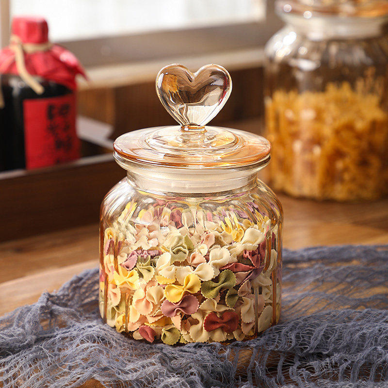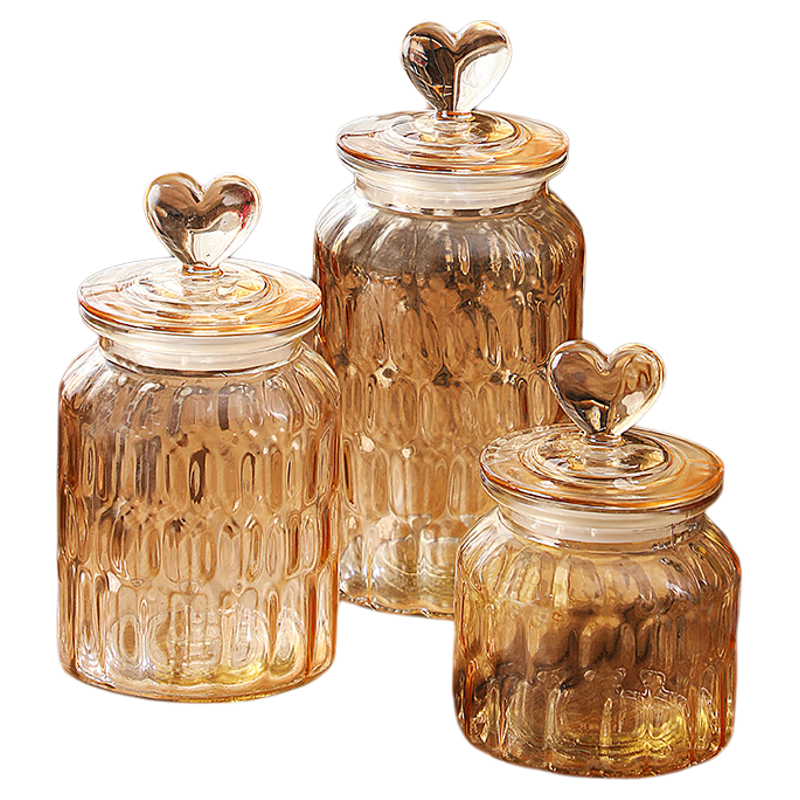 玻璃密封罐创意爱心储物罐透明琥珀色高颜值零食糖果茶叶储物带盖