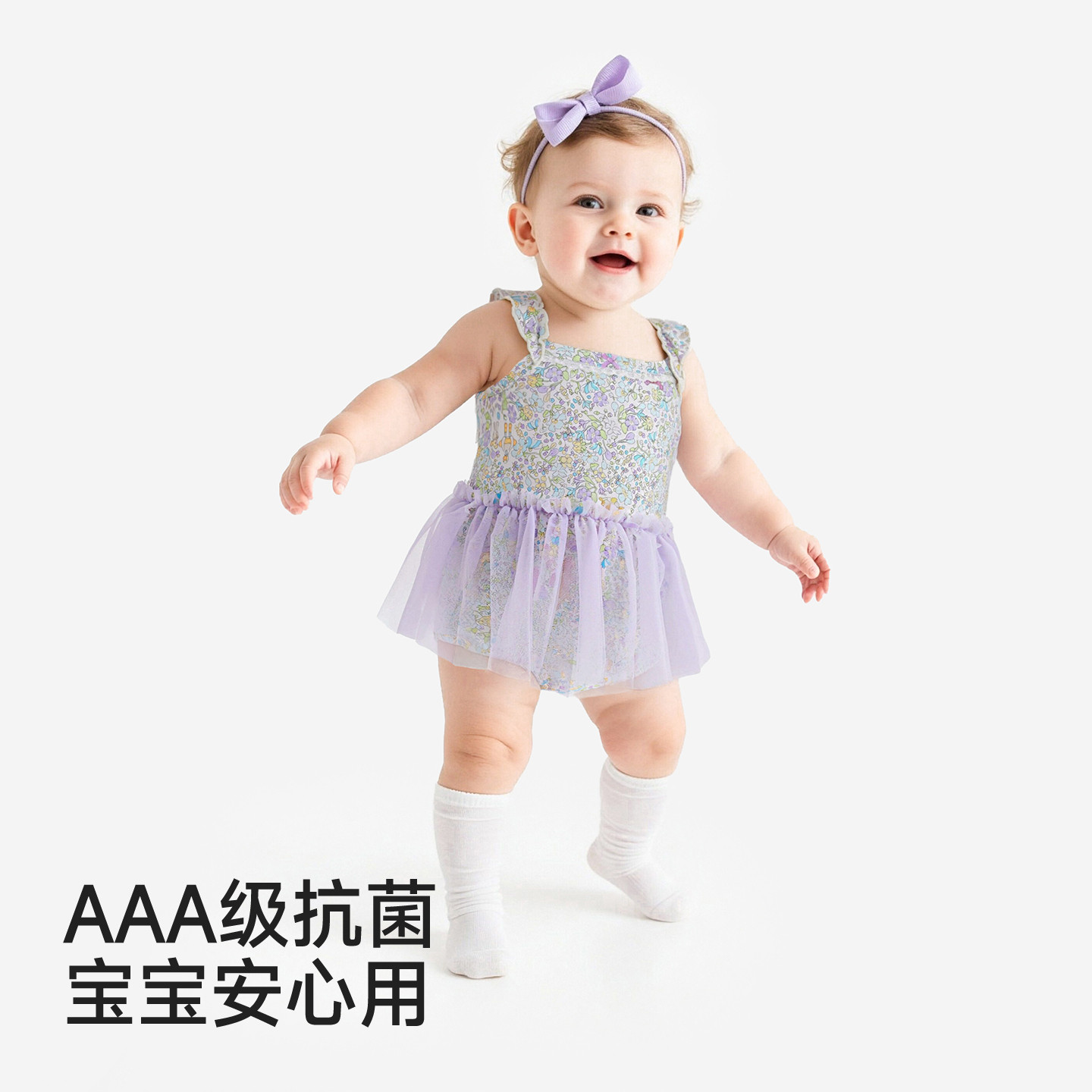 【商场同款】英氏婴儿连体衣女宝宝衣服家居服夏季凉感短袖哈衣