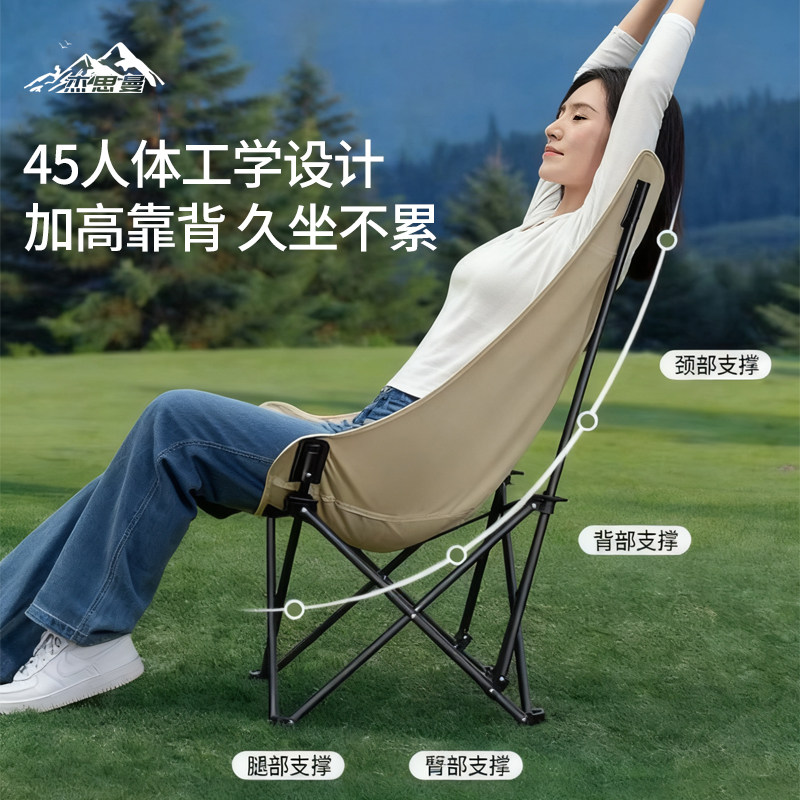 骆驼躺椅加厚月亮椅高背户外折叠椅便携露营办公午睡午休休闲椅子