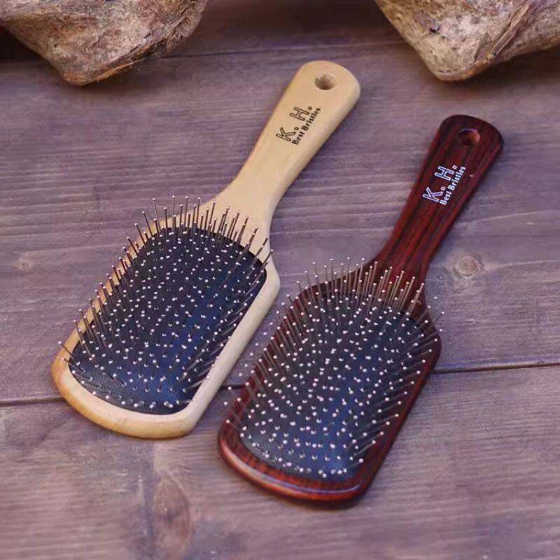丽娜气囊按摩梳头部经络梳发实木梳子钢齿防静电保健包邮