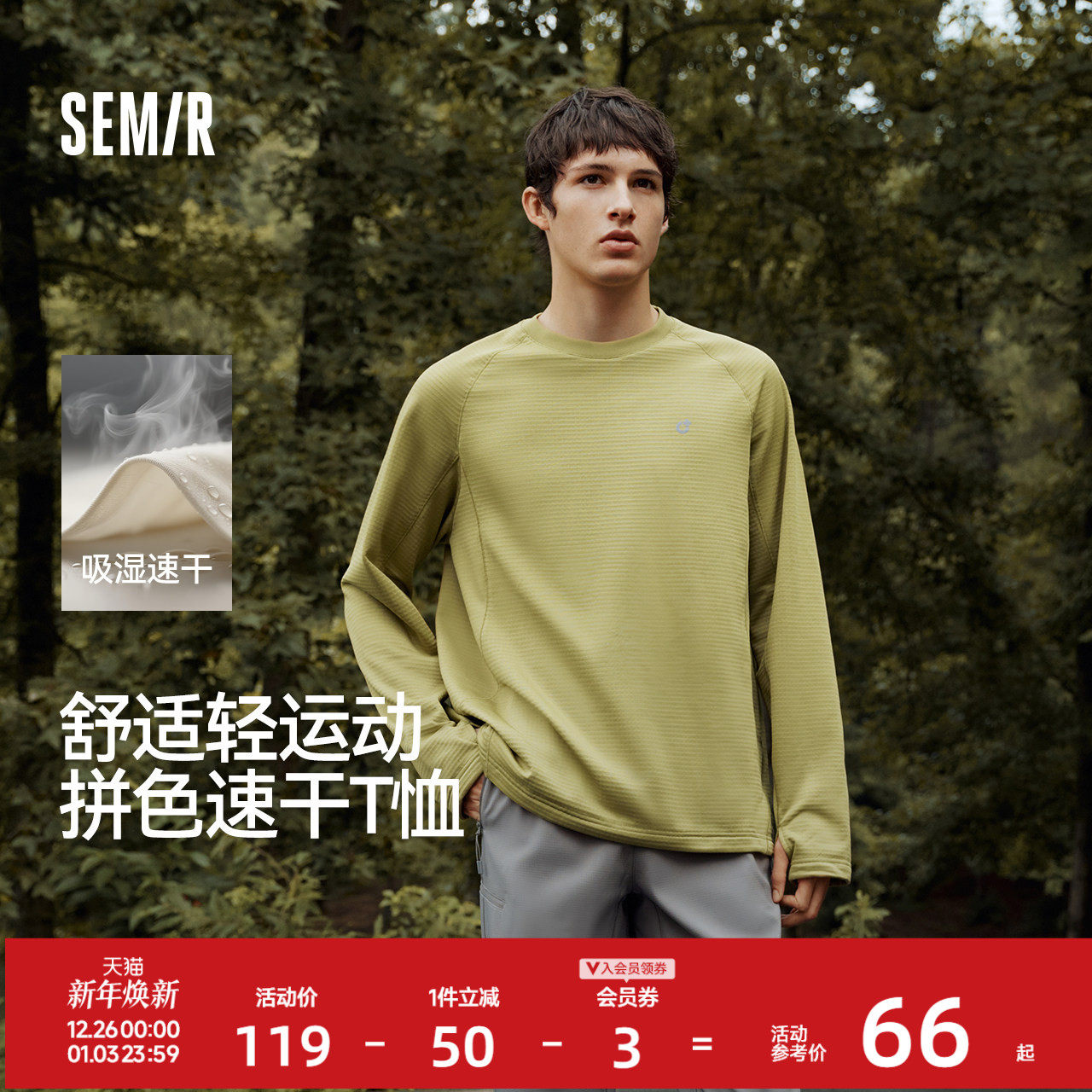 森马长袖T恤男冬吸湿速干撞色拼接2025新款户外运动弹力内搭上衣