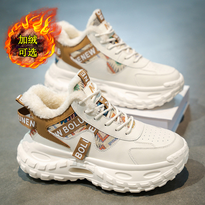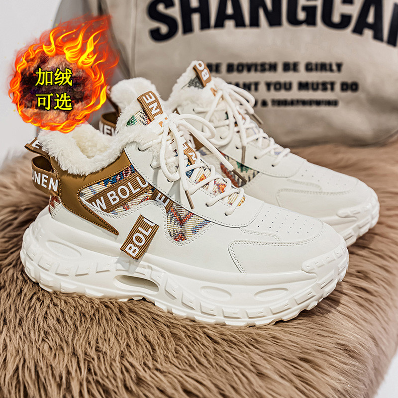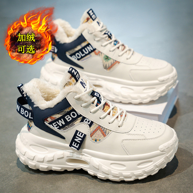 秋冬季新款男鞋加绒加厚高帮休闲鞋运动时尚厚底百搭马丁靴雪地靴