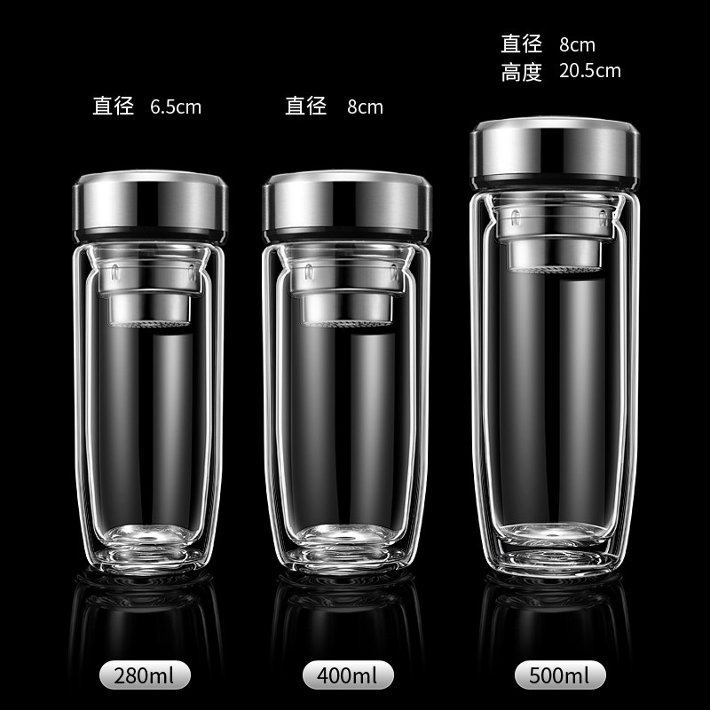 高硼硅车载玻璃杯水杯男士双层隔热杯子防烫防爆耐高温大容量便携