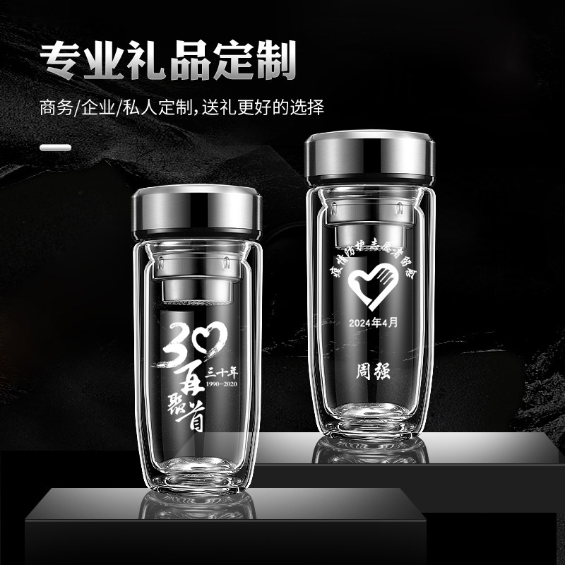 希诺双层玻璃杯男士高档便携抗菌礼盒车载水杯隔热杯子家用女茶杯