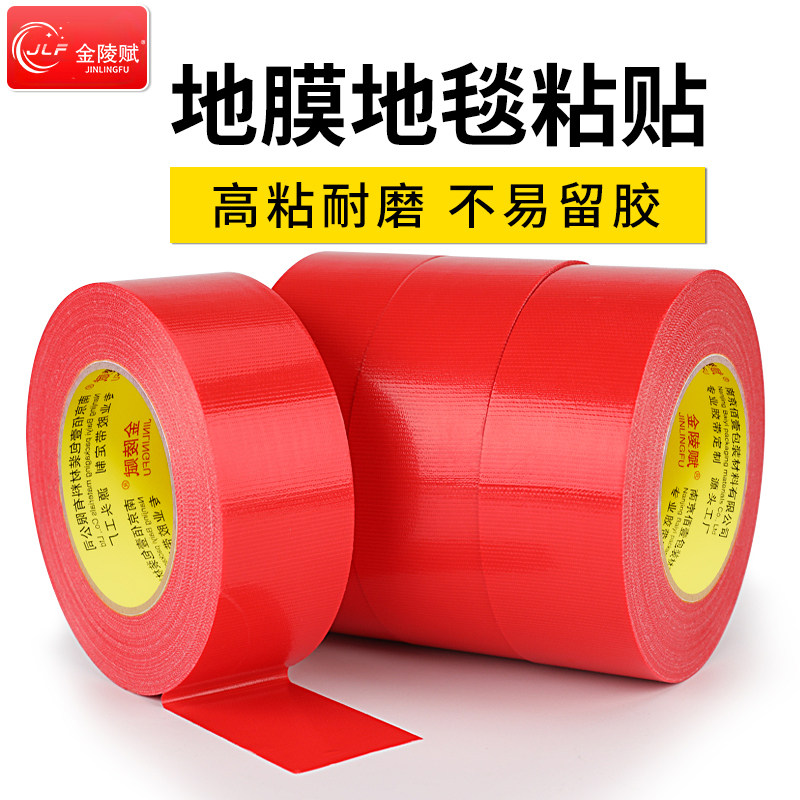 红色单面布基胶带固定贴无痕不残留胶结婚用庆会展瓷砖装修地面保护地膜警示高粘度粘地毯专用胶带耐磨封箱