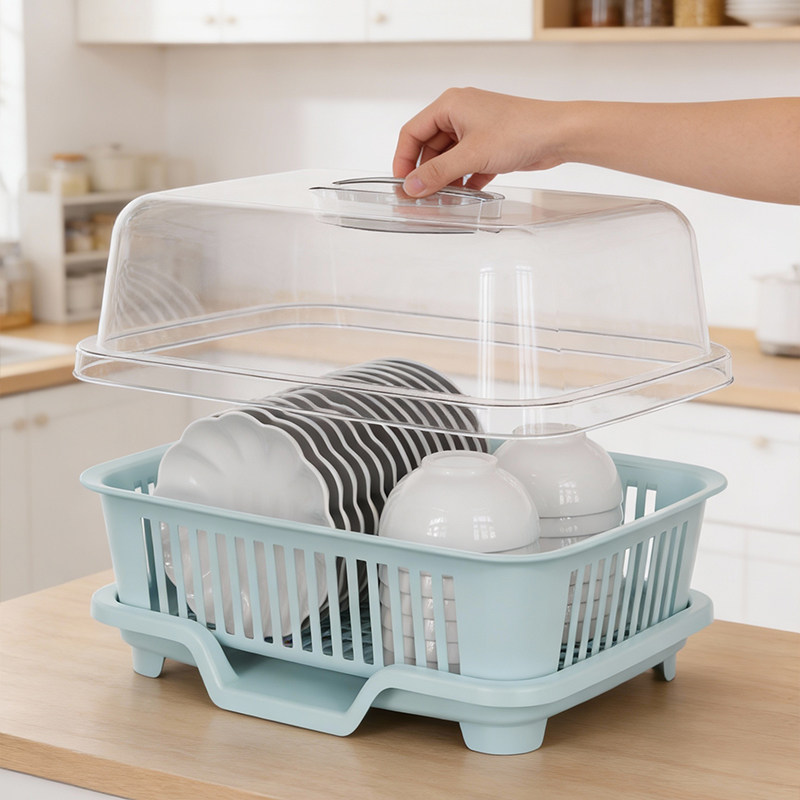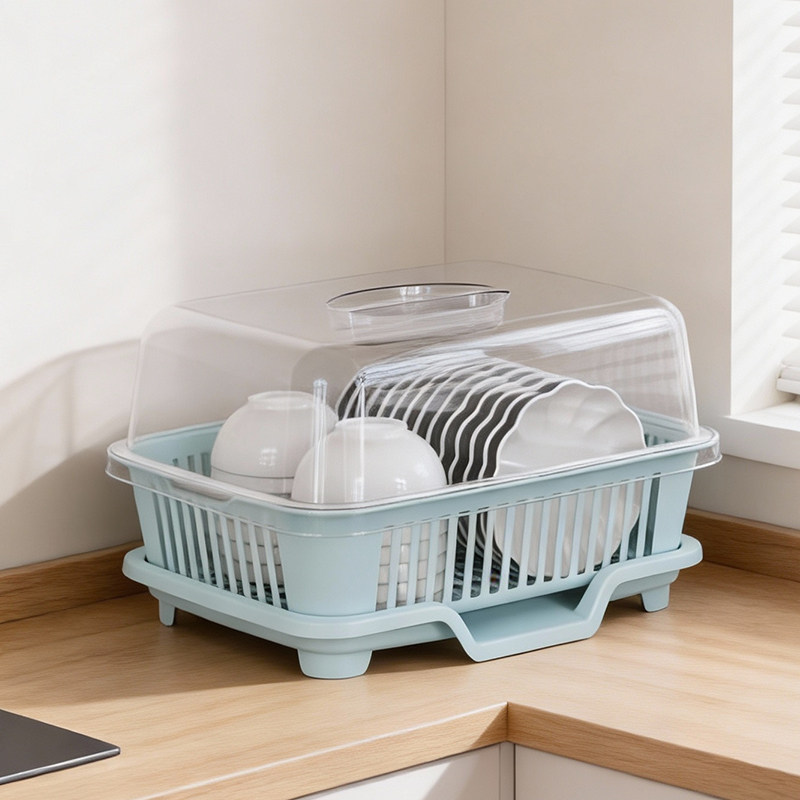 碗筷收纳盒带盖放餐具装盘子的置物架家用厨房沥水碗柜塑料储物箱