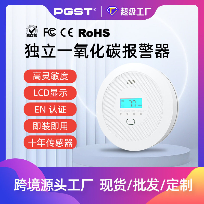 跨境爆款一氧化碳报警器EN50291认证家用消防一氧化碳探测器出口