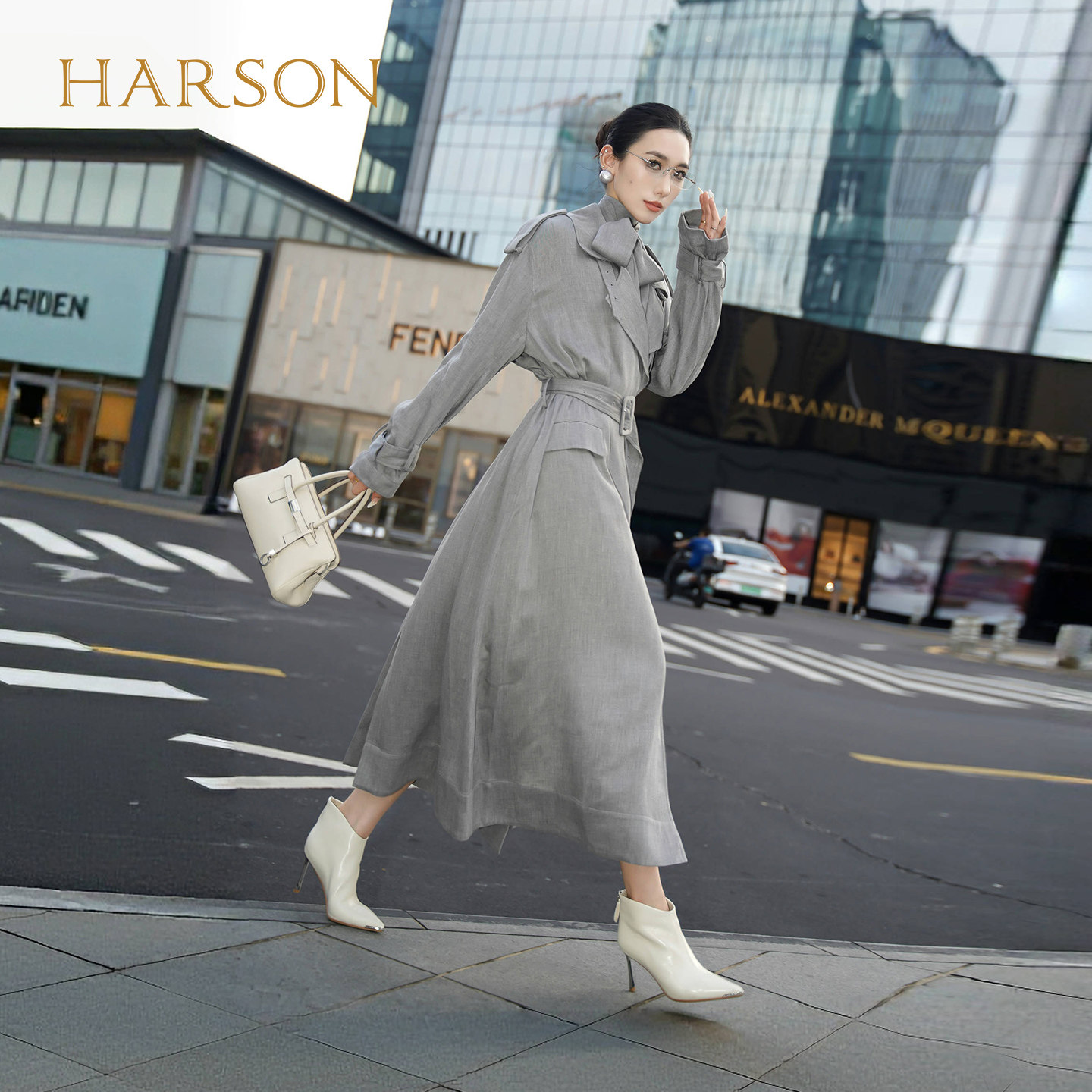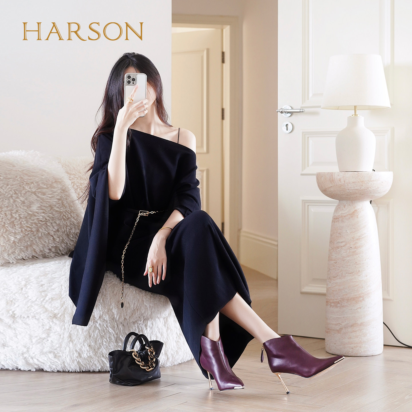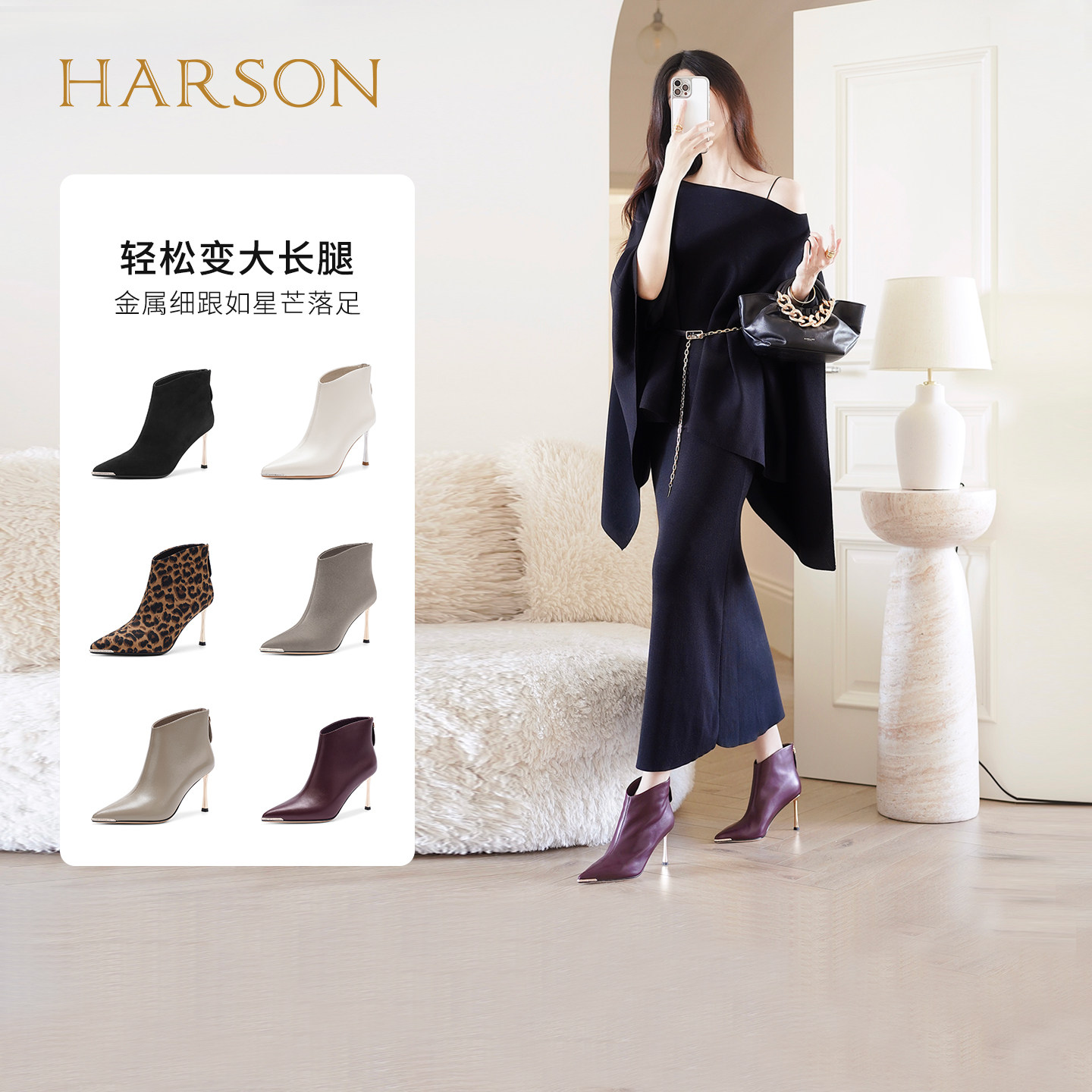 哈森尖头水钻细高跟时装靴气质优雅显高女短靴2025冬新款HA257166