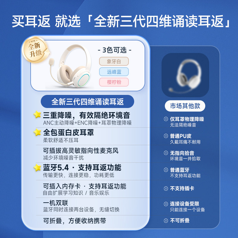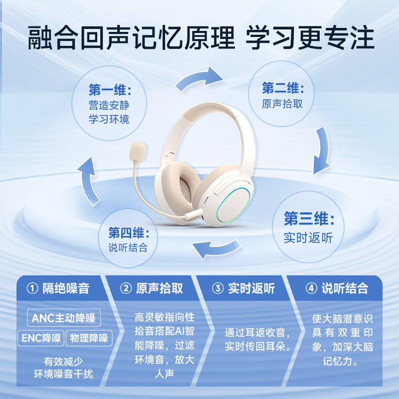 耳返式背书神器初中生小学生儿童沉浸式学习无线蓝牙降噪专用耳机