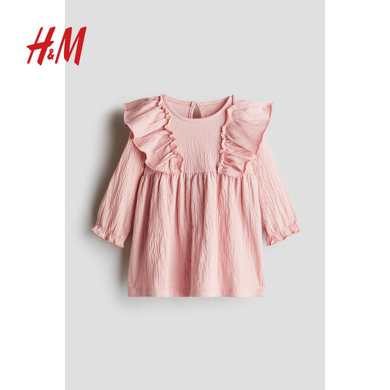 HM童装女婴连衣裙冬季皱感圆领长袖碎褶公主裙1255031