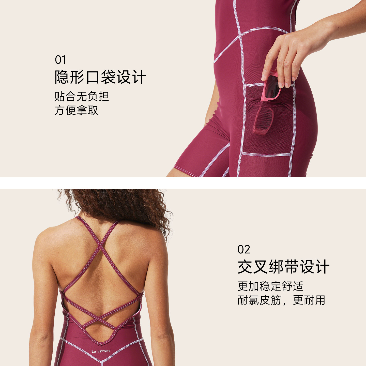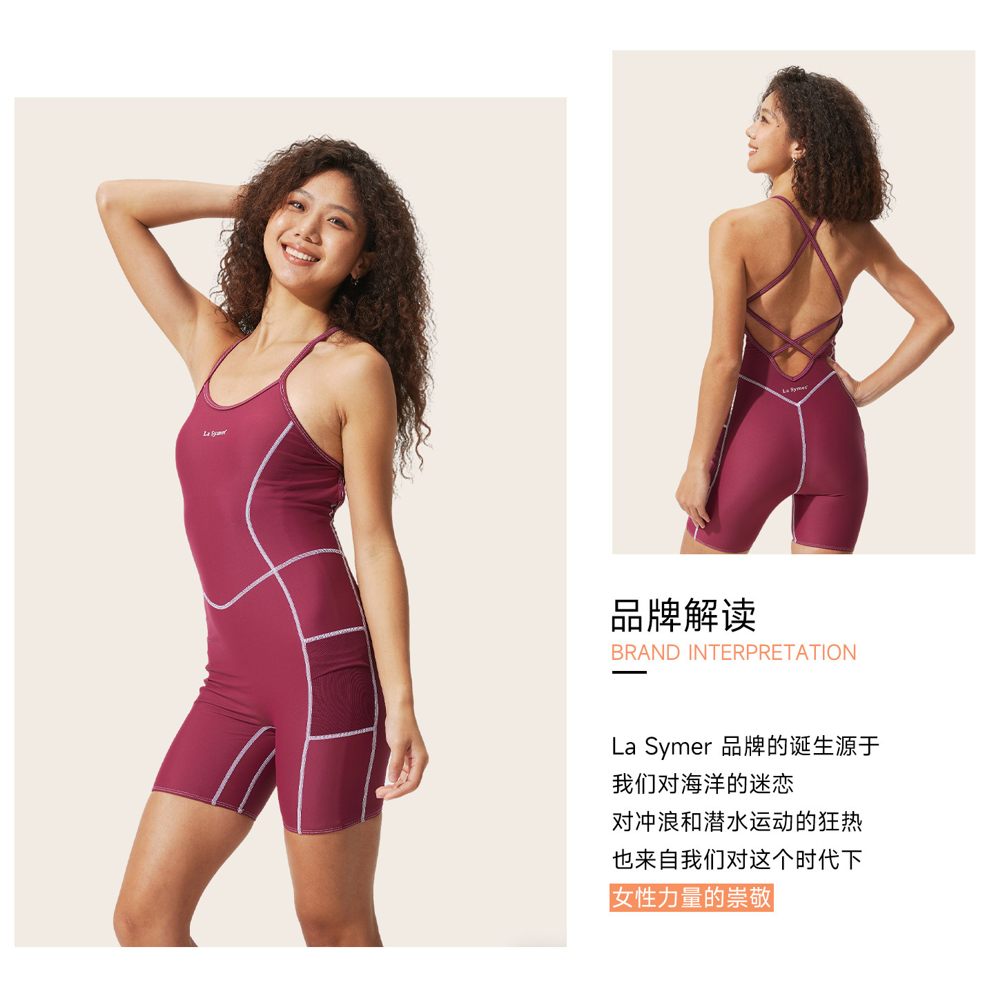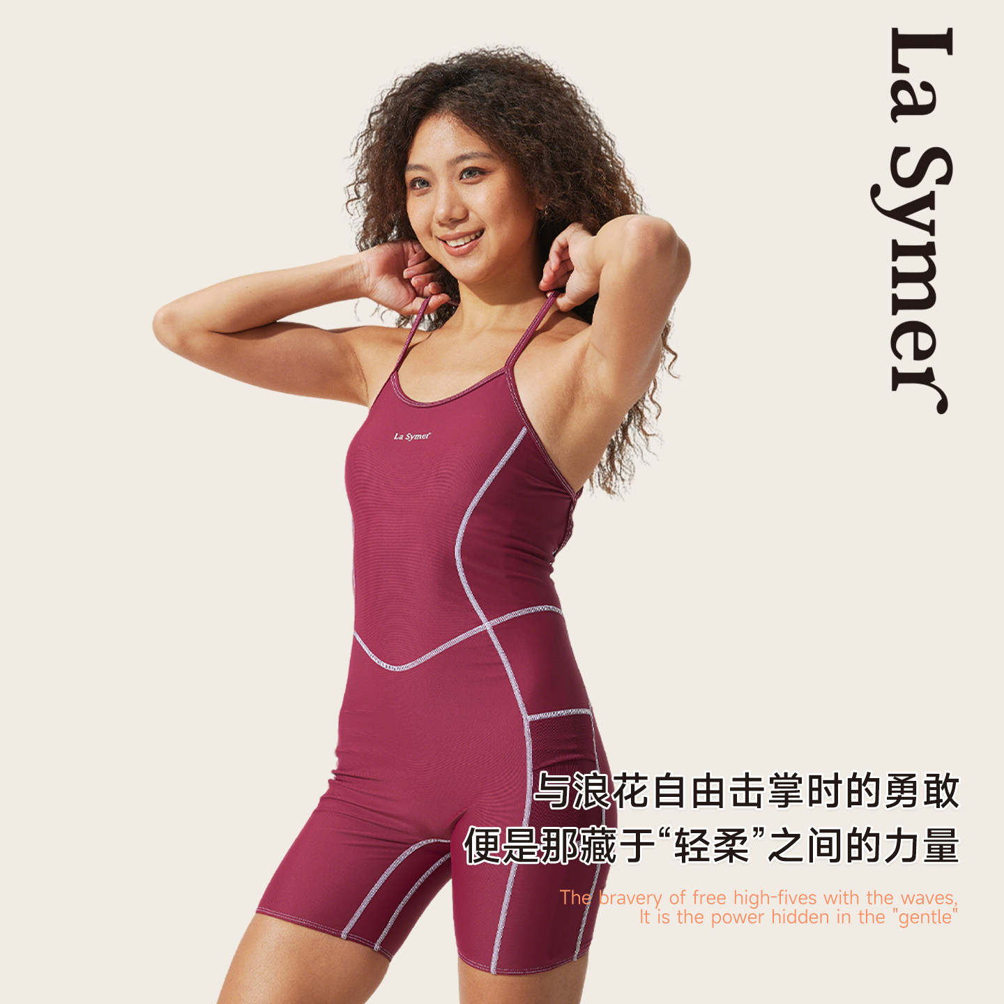 La Symer泳衣女连体纯色无袖竞速泳装女款高弹性专业训练游泳衣女