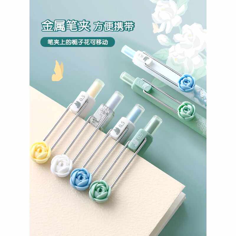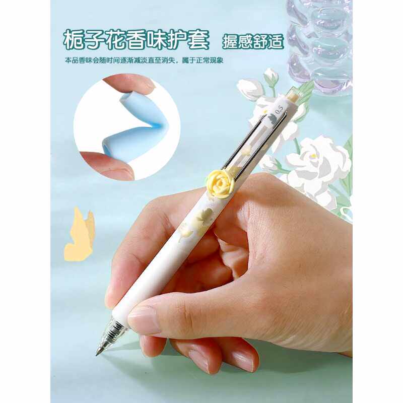 晨光栀子花开按动中性笔夏日限定自带花香学生刷题作业高颜值水笔