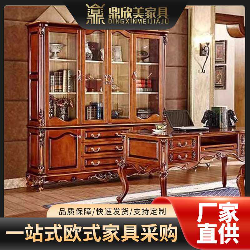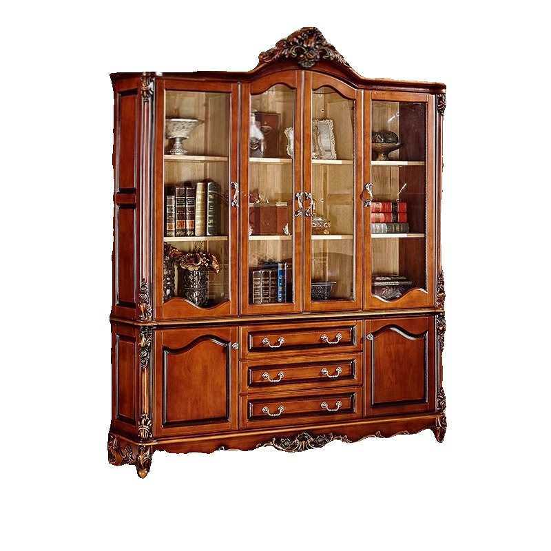 欧式轻奢书柜四门实木雕花玻璃书房美式复古柜子家用收纳豪华家具