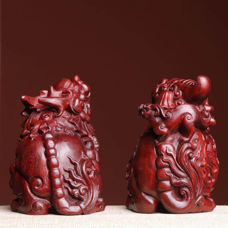 紫檀子母两角进宝貔貅手把件摆件木雕汽车装饰品玩物件