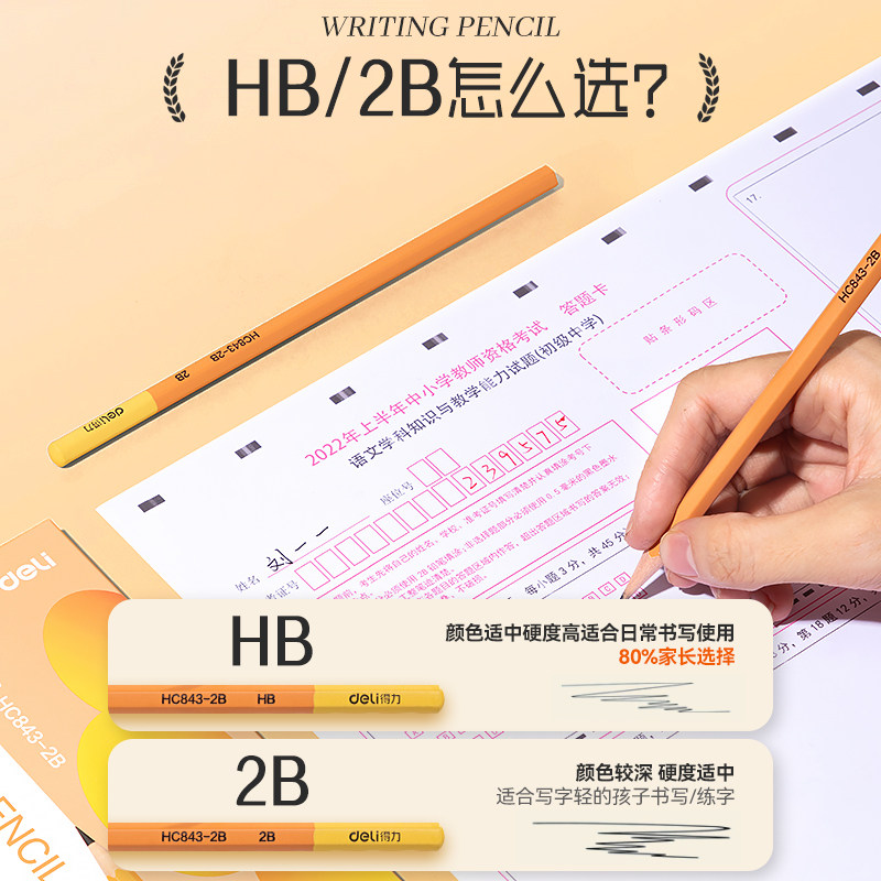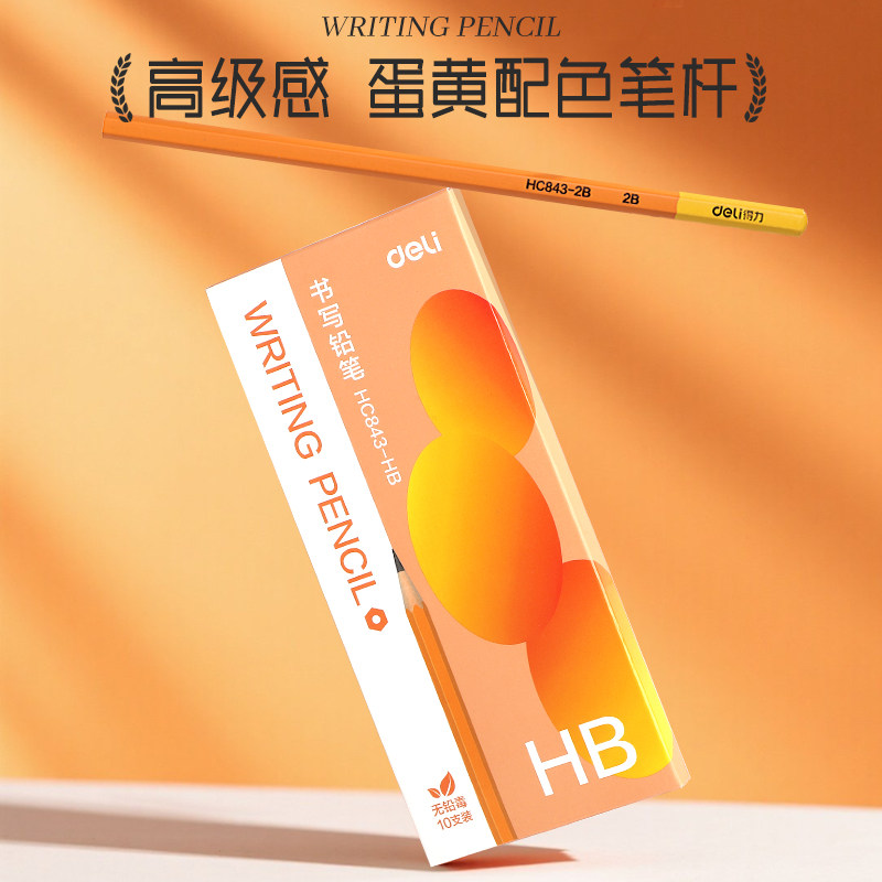得力小学生专用无铅毒防啃咬书写字铅笔HB考试涂卡笔幼儿园儿童2B素描绘画笔一年级二年级学习必备文具