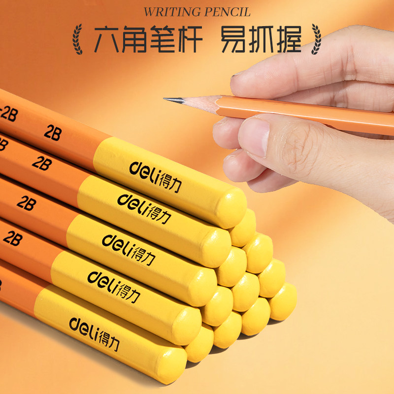得力2B铅笔小学生儿童写字无毒HB一年级考试素描幼儿园初学者铅笔