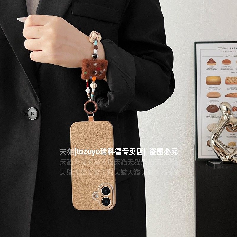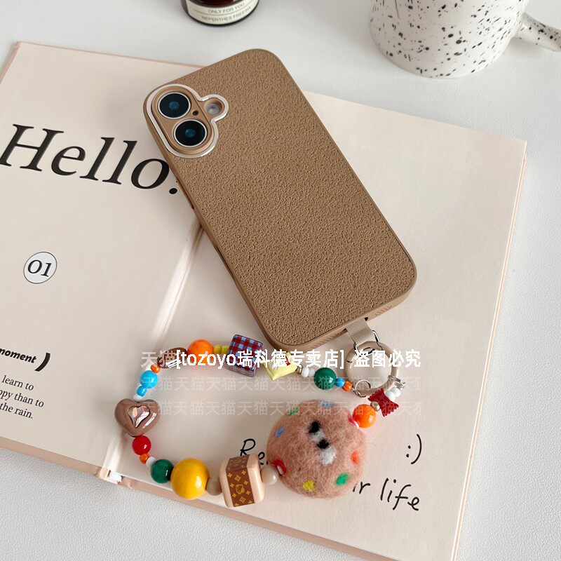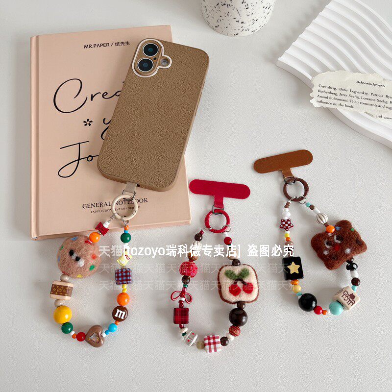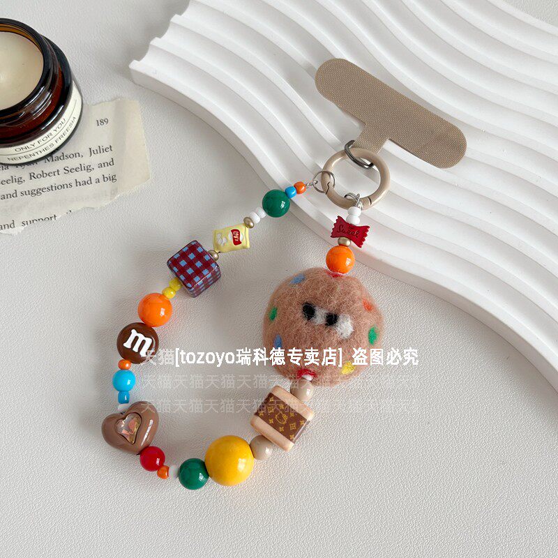 超好看彩色手机链可爱手腕防丢绳挂链毛绒手链毛毡樱桃高级挂饰挂绳女链条串珠腕带钥匙扣包包u盘挂件夹片壳