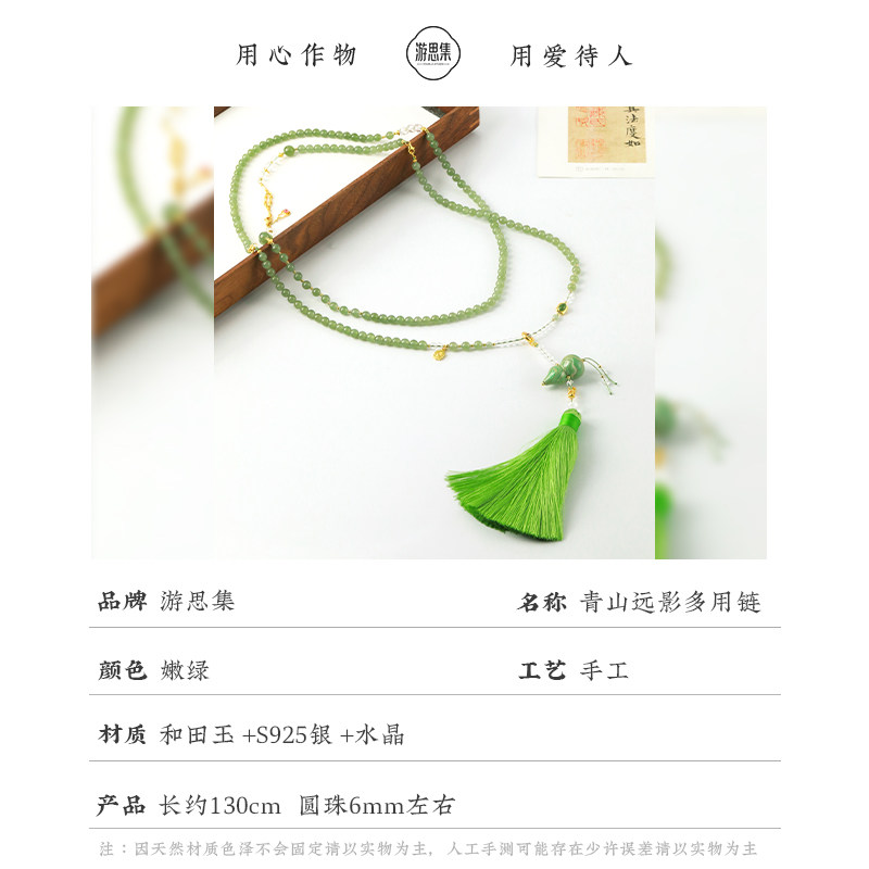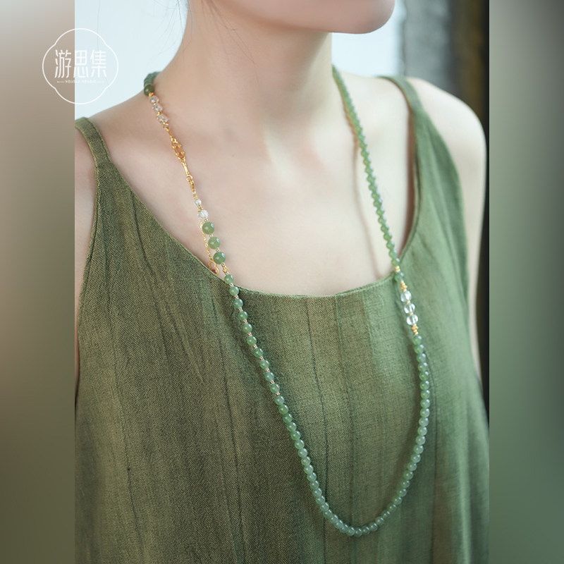 晴水和田玉斜挎多用链高冰念珠新中式文艺背背链项链多层手串佛珠