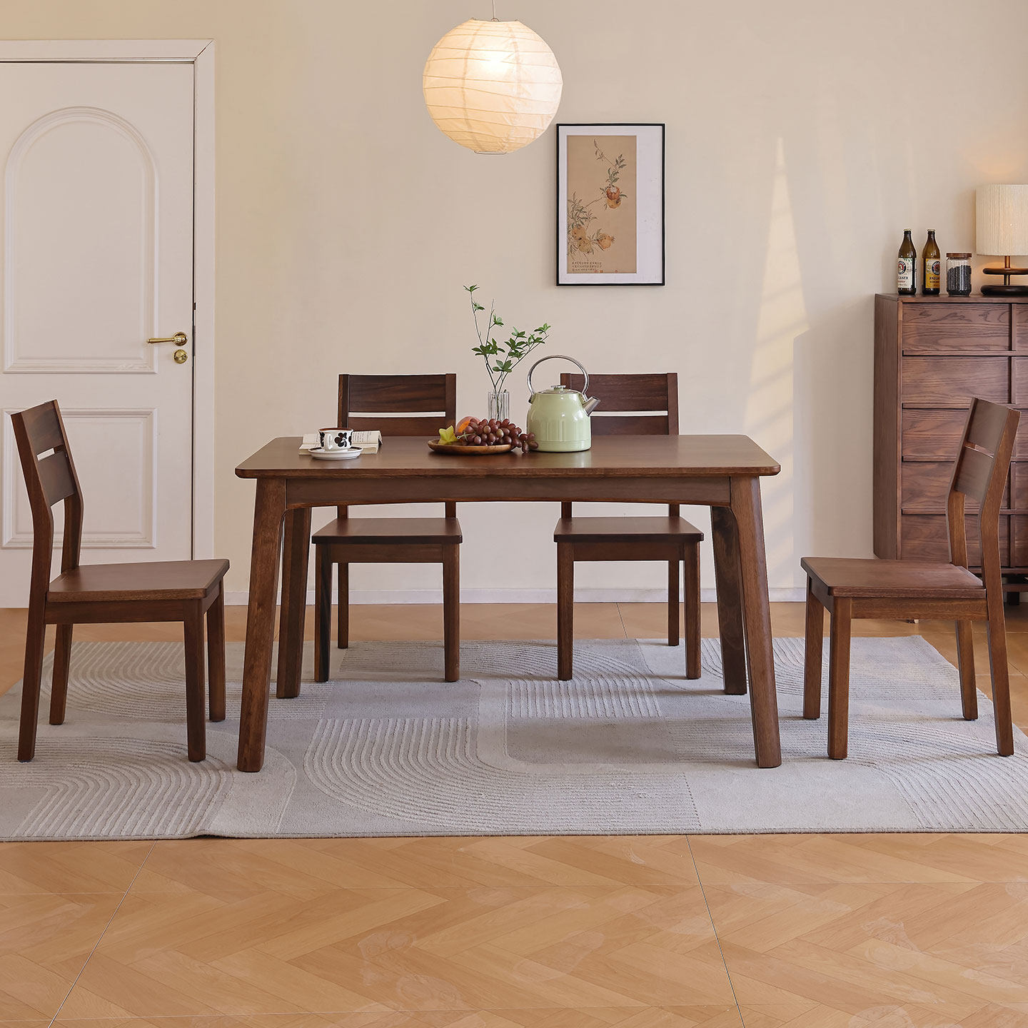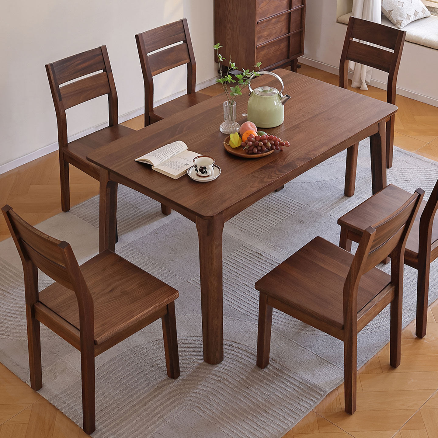 一林半舍实木餐桌黑胡桃木家用饭桌长桌简约桌椅组合小户型桌子