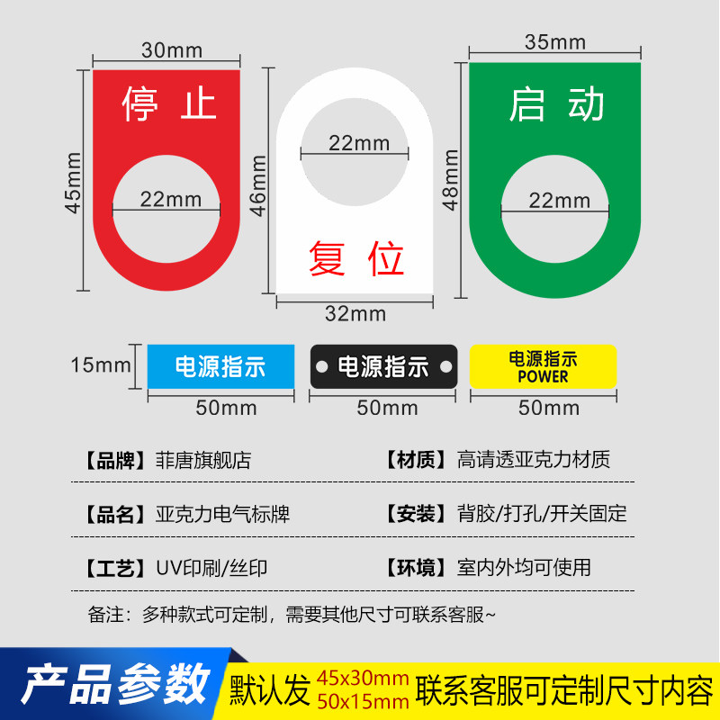 电气按钮标识牌定做配电箱控制柜指示灯亚克力双色板雕刻标牌铭牌挂牌支持定制