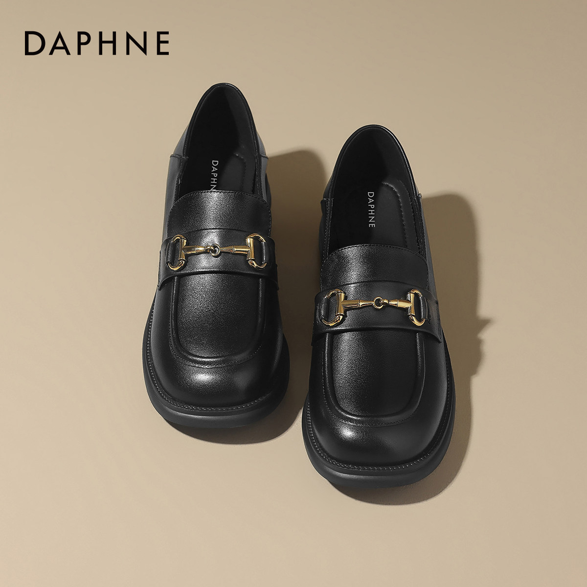 达芙妮乐福鞋女2025新款秋冬小皮鞋低跟女鞋英伦风豆豆鞋平底单鞋