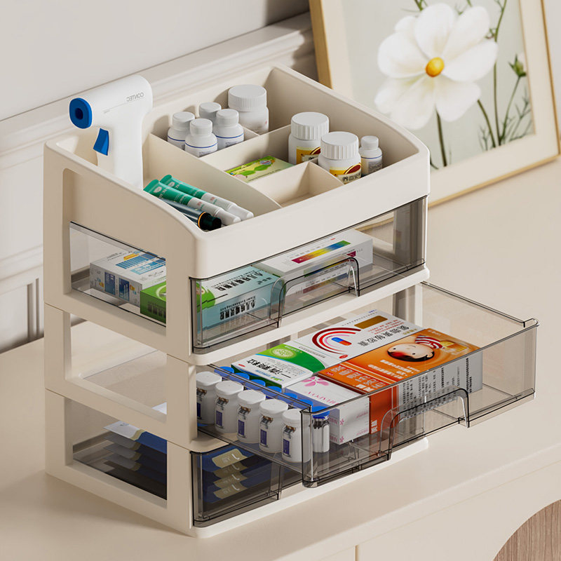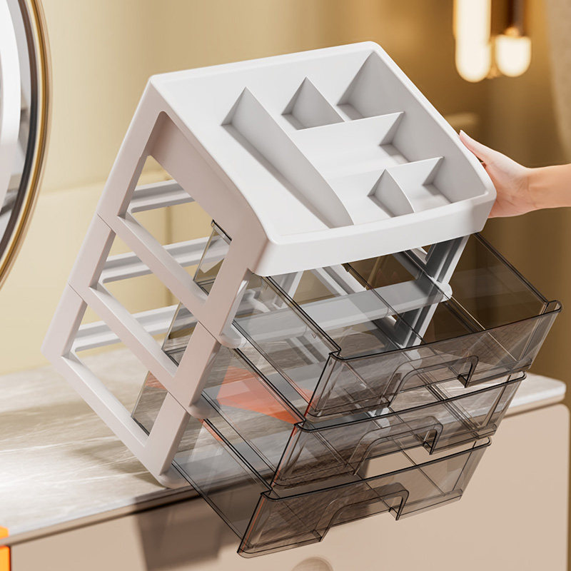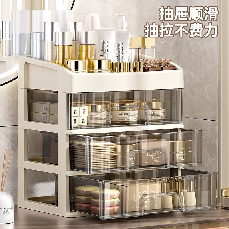 化妆品收纳盒抽屉式化妆间化妆收纳柜梳妆台文具大容量带抽屉面膜
