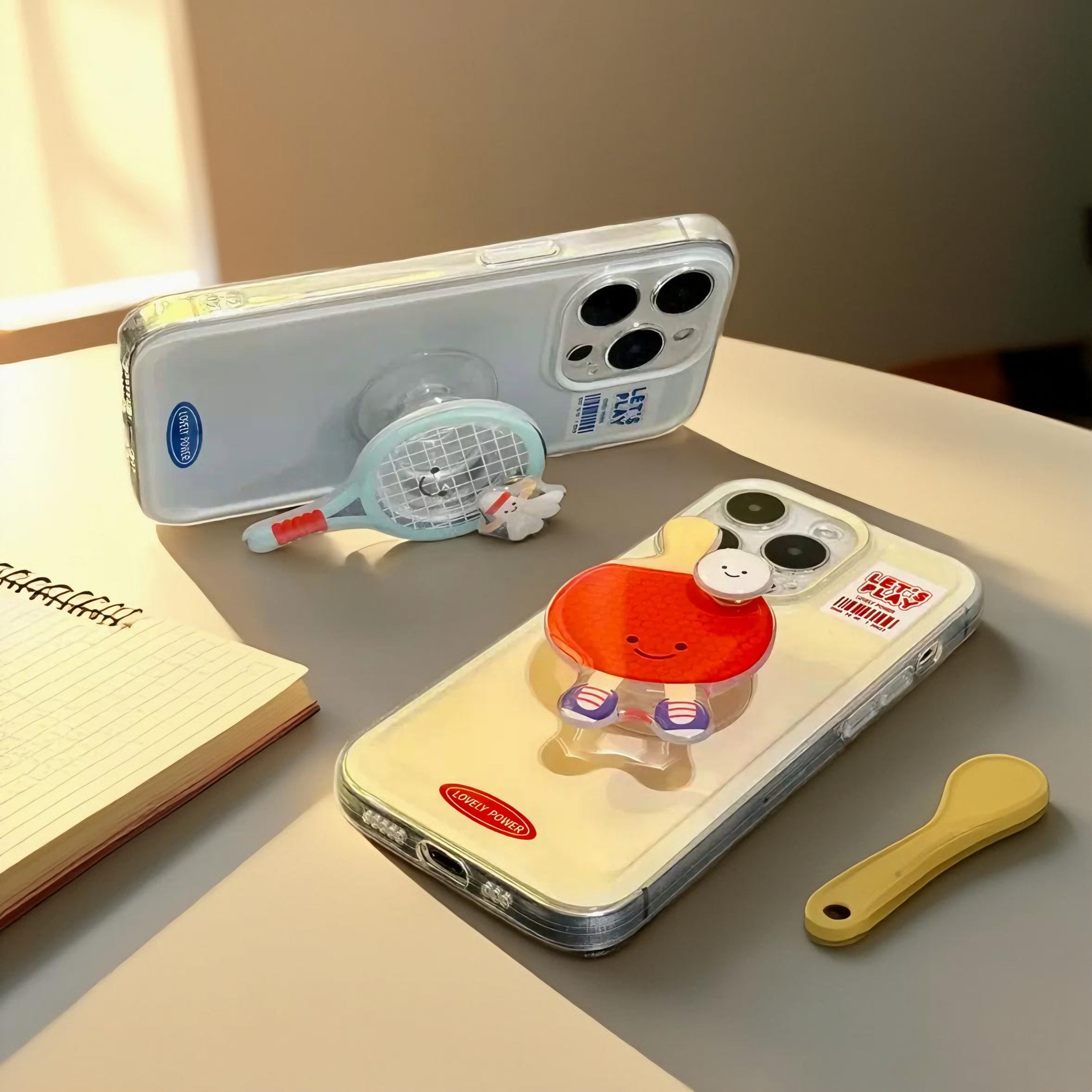 磁吸手机支架乒乓球球拍旋转气囊折叠支架羽毛球拍吸盘桌面可伸缩
