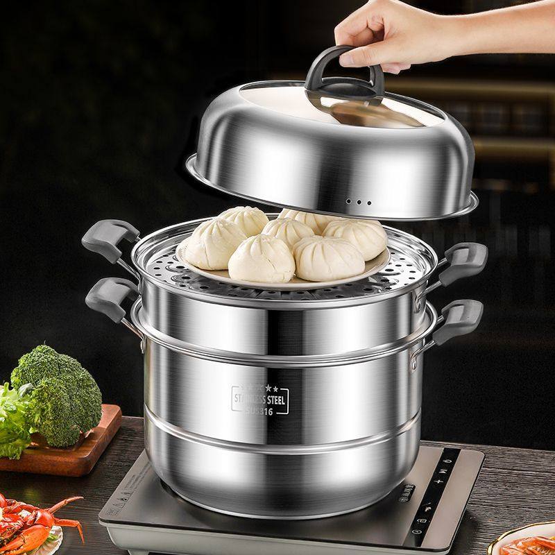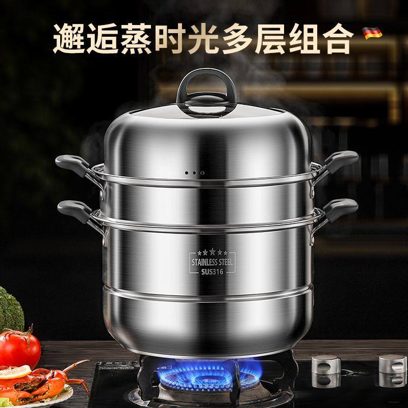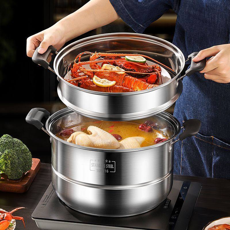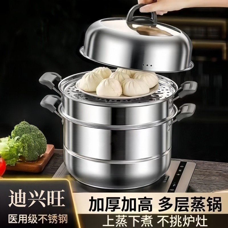 迪兴旺食品级不锈钢蒸锅多层大容量电木手柄汤蒸锅燃气电磁炉通用