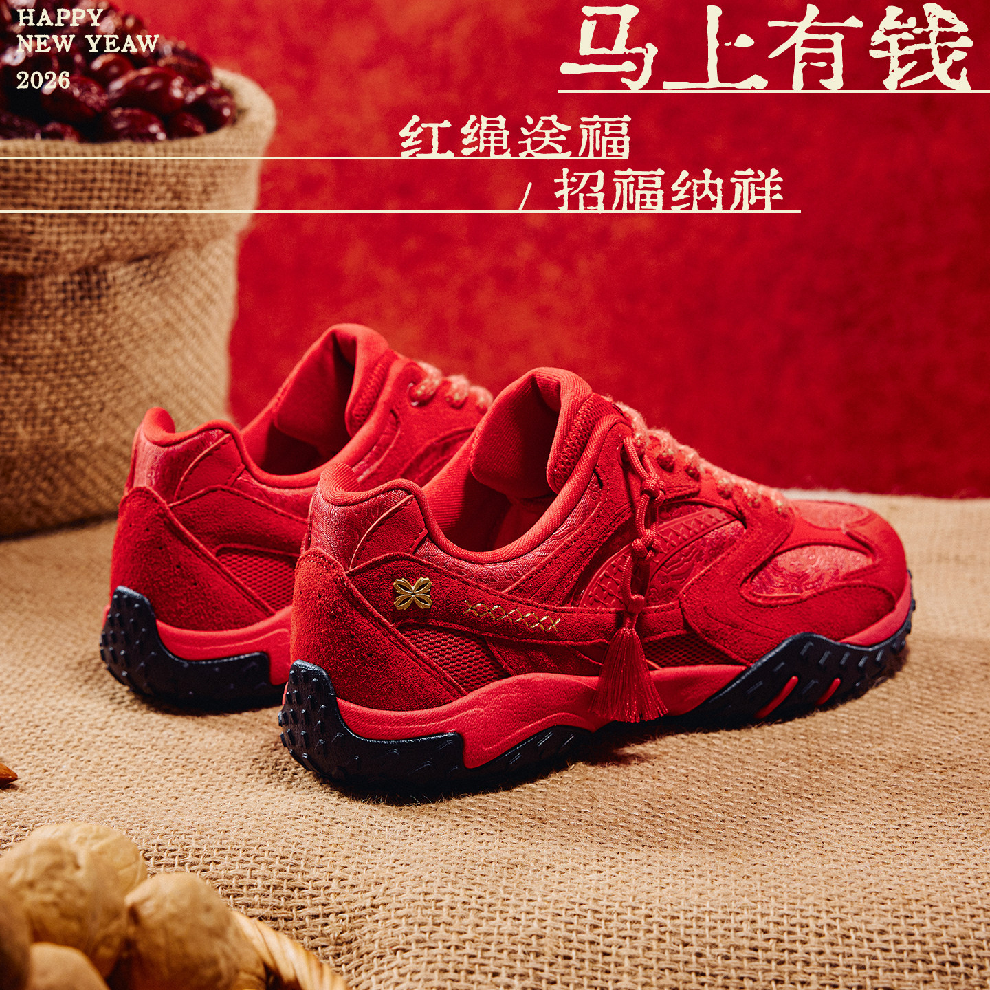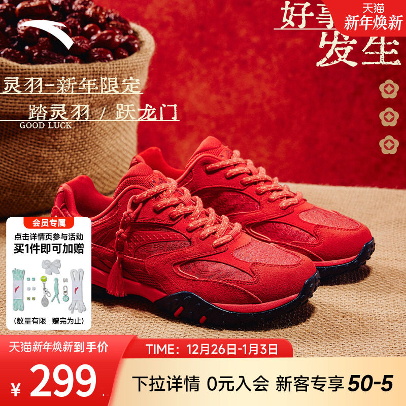 安踏好事发生 灵羽丨新年款红色休闲鞋女鞋反绒皮潮流百搭运动鞋