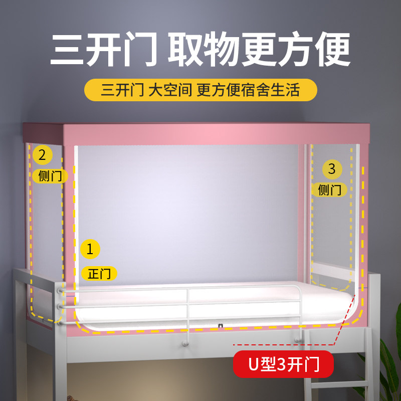 高中生宿舍下铺大学生蚊帐带支架寝室上铺防尘顶免安装90三四开门