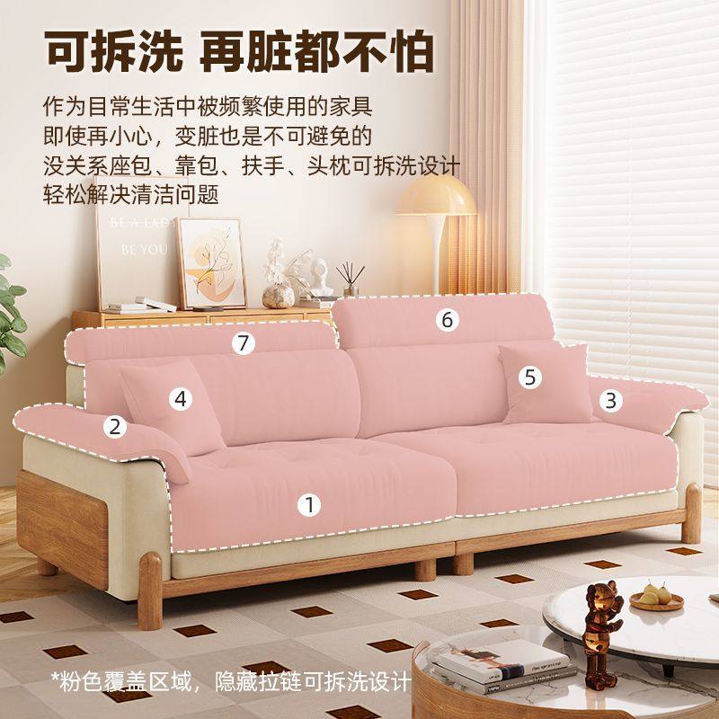 新款日式现代简约原木风布艺沙发客厅小户型客厅卧室直排实木家具