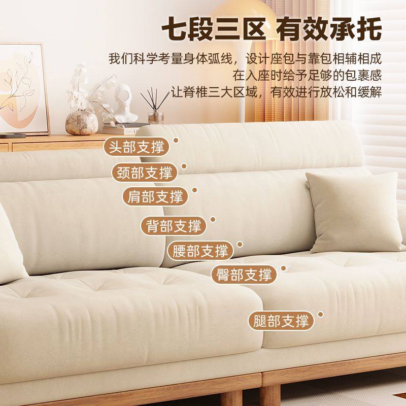 柃羊说北欧原木奶油风三人位沙发日式直排小户型客厅实木布艺沙发