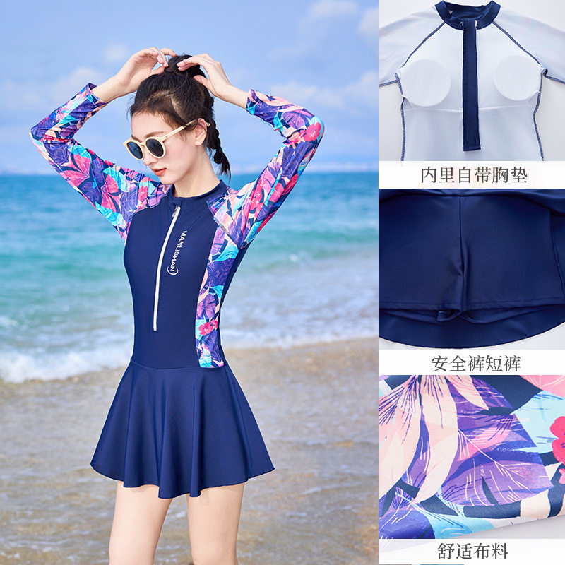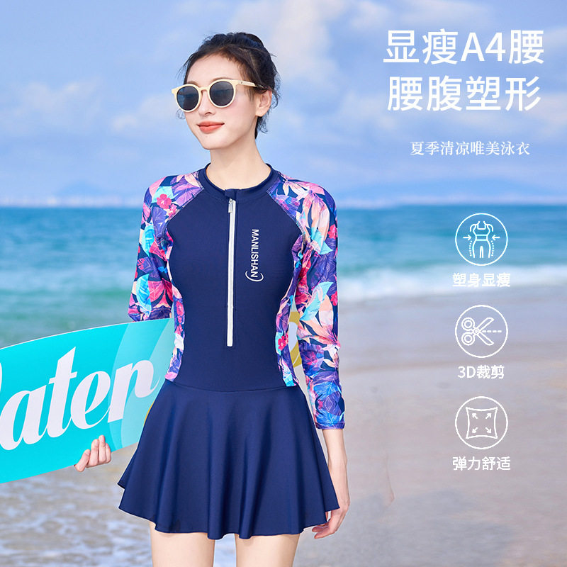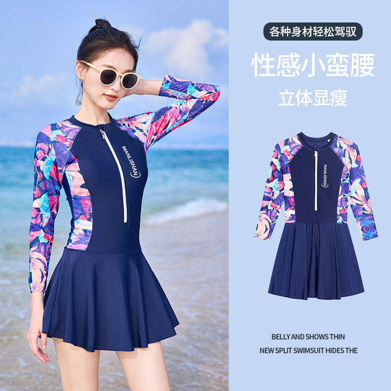 新款长袖泳衣女士防晒2025年连体遮肉显瘦高级感泳衣酒店温泉泳装