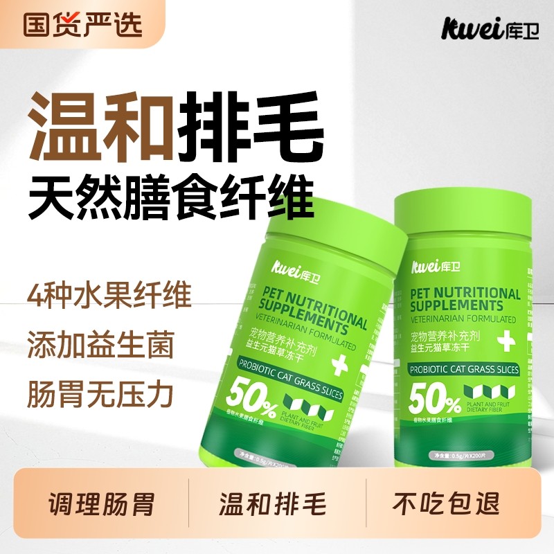 库卫猫草片猫咪化毛片化毛膏吐毛球排毛猫用益生菌护肠胃膳食纤维
