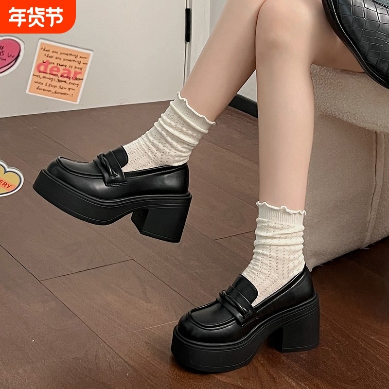 日系jk制服高跟玛丽珍小皮鞋女英伦风春季2025新款厚底增高乐福鞋