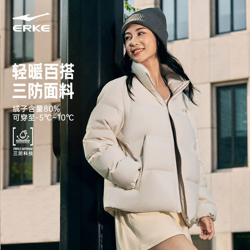 鸿星尔克羽绒服女款2025冬季新款女士三防运动面包服棉服夹克外套