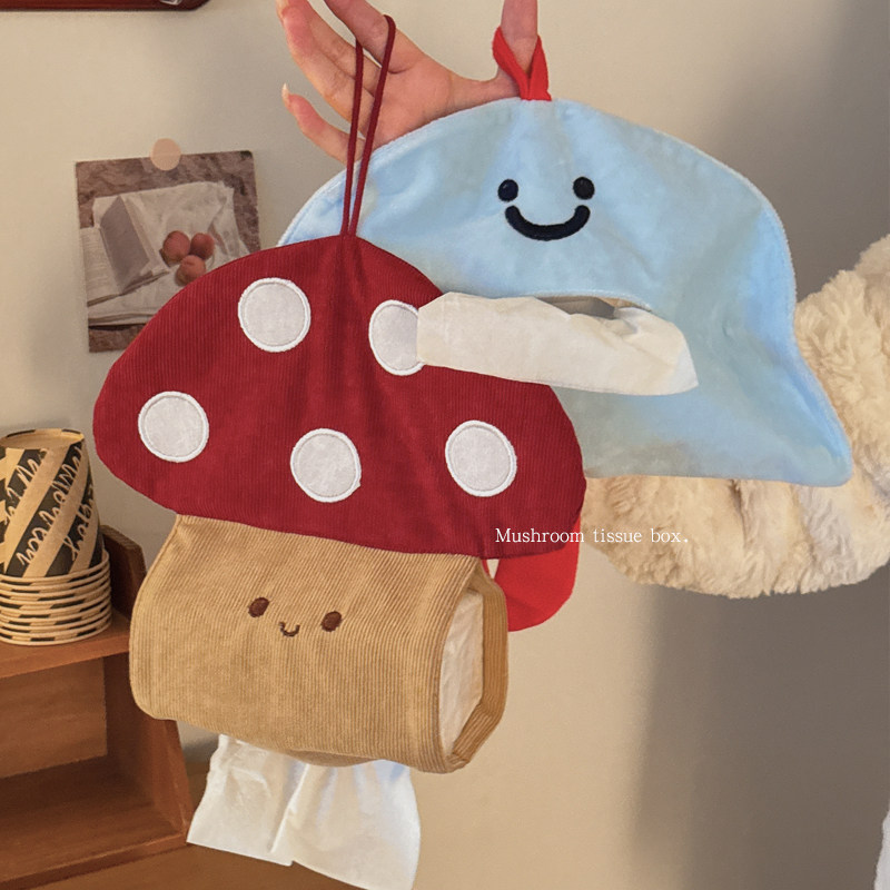 可爱蘑菇纸巾盒家用客厅床头壁挂式抽纸盒学生宿舍悬挂纸巾收纳袋