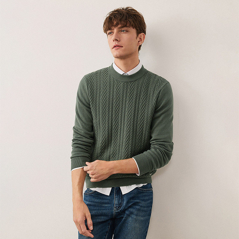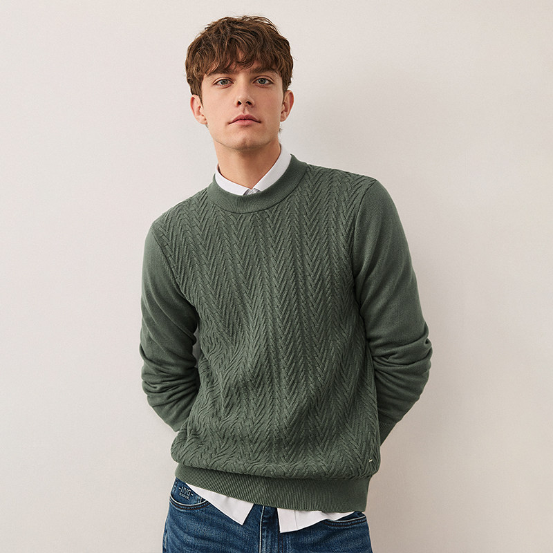 森马毛衫男冬季满版提花针织衫撞色毛衣宽松套头衫百搭提花潮-TK