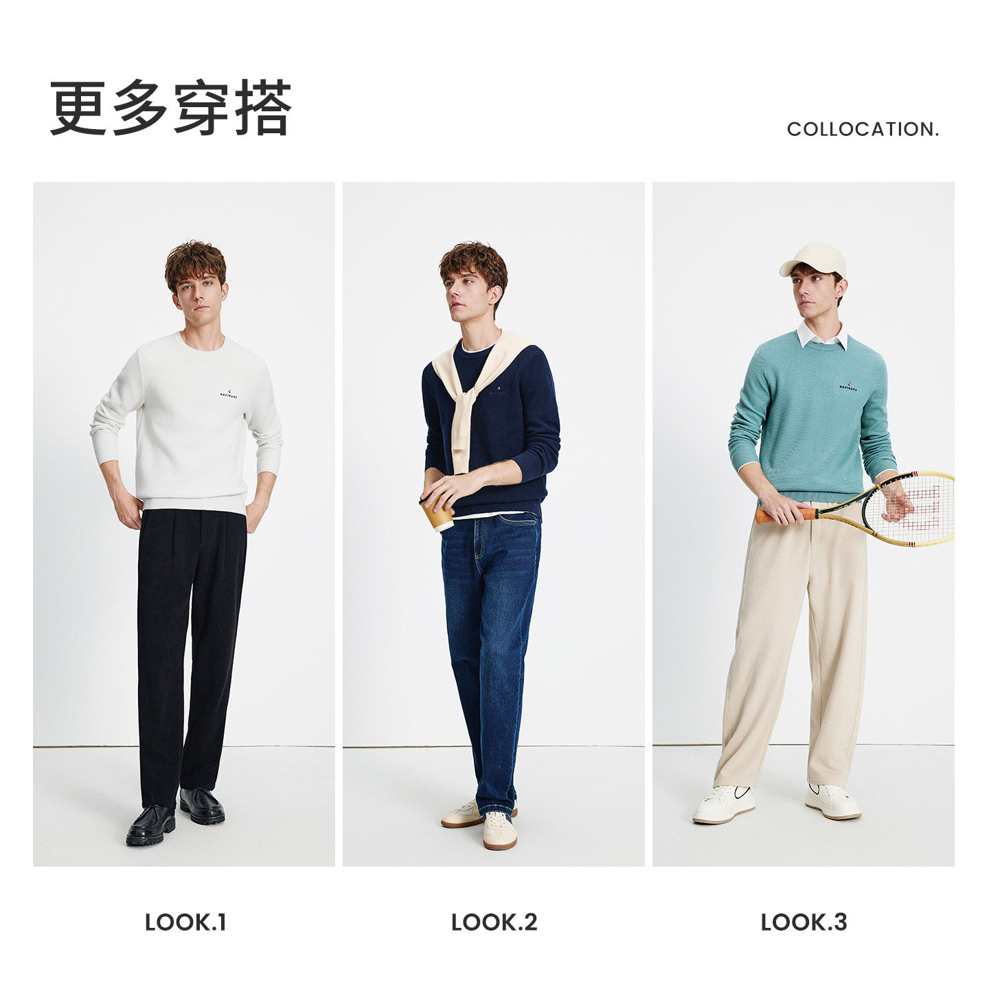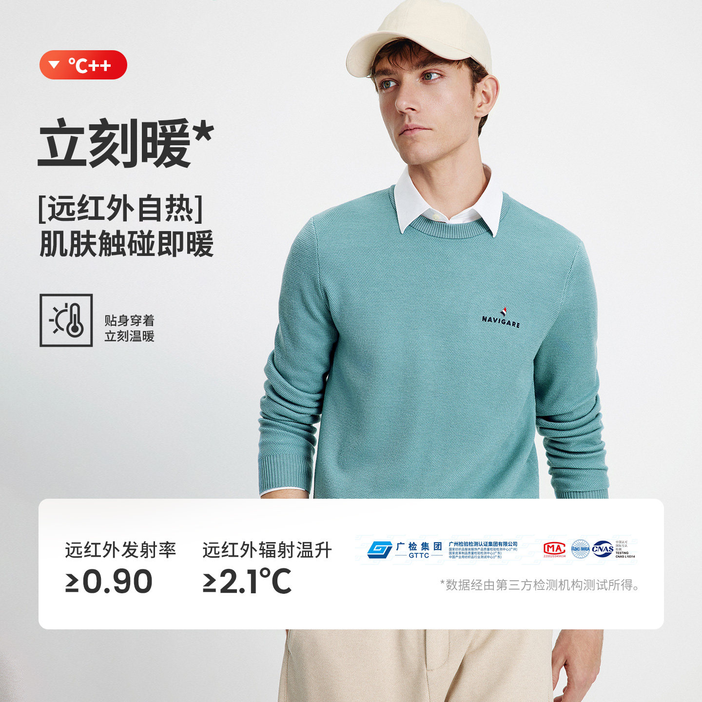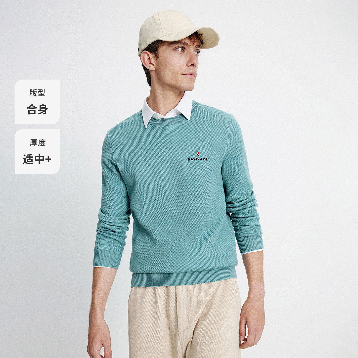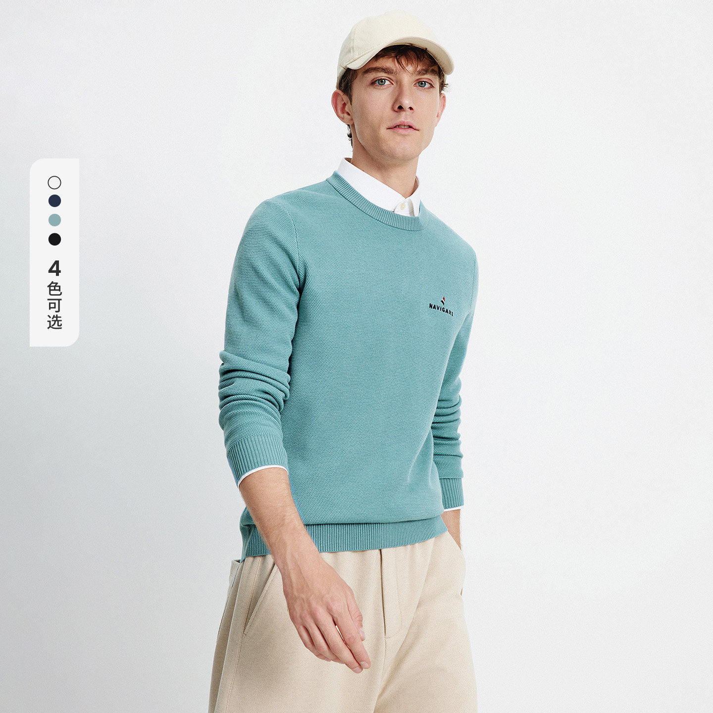 Navigare意大利小帆船圆领毛衣男士针织衫秋冬新款弹力休闲羊毛衫