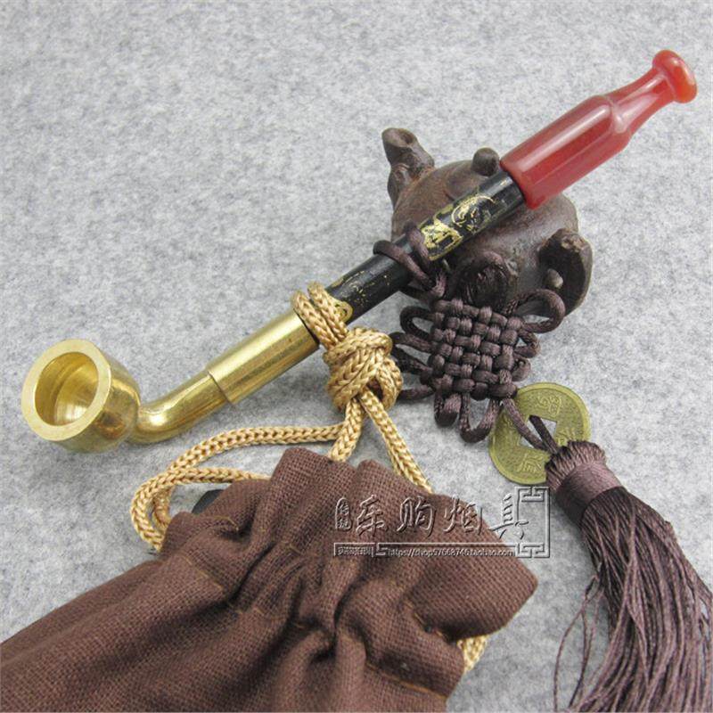 老式烟斗烟嘴白玛瑙传统手工布袋烟锅石臼旱烟袋正宗