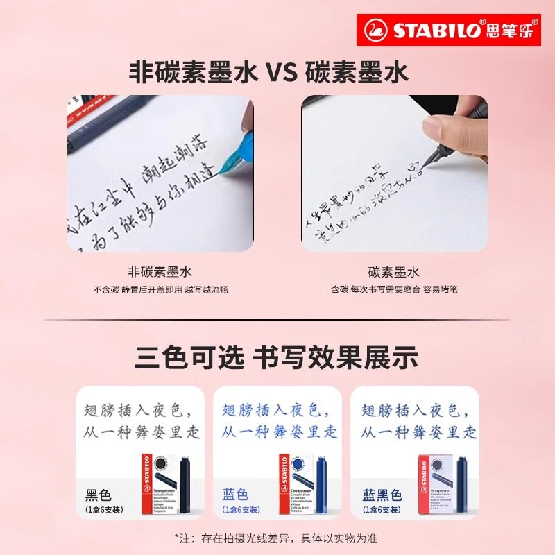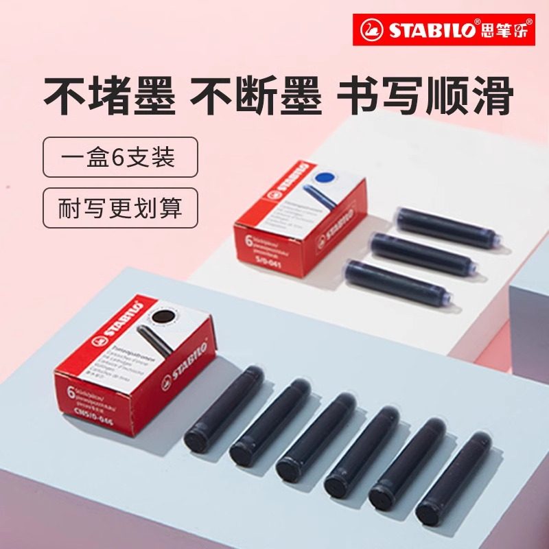 【所有女生直播间】stabilo思笔乐德国钢笔小学生中学生儿童男女生练字作业硬笔书法墨囊可替换墨胆蓝黑色