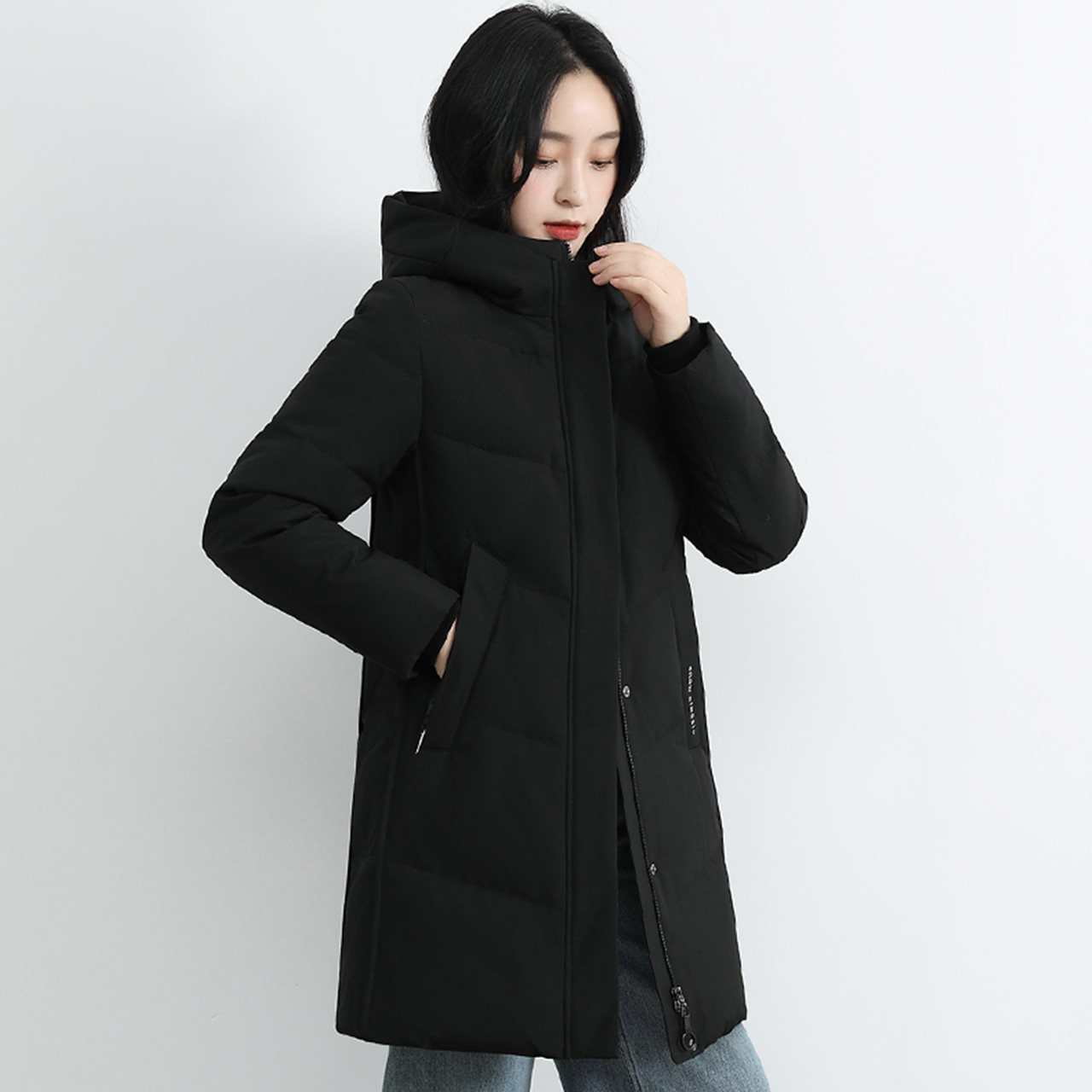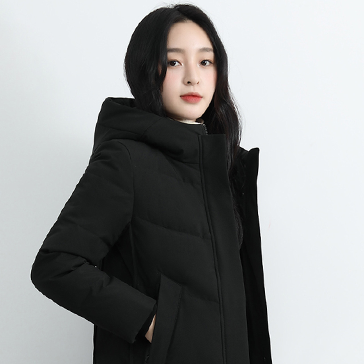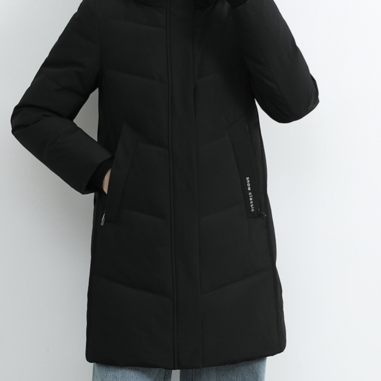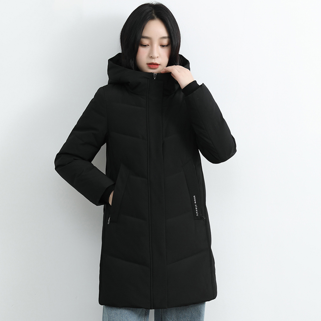 雪中飞秋冬女士保暖连帽休闲舒适中长款羽绒服大码保暖妈妈外套