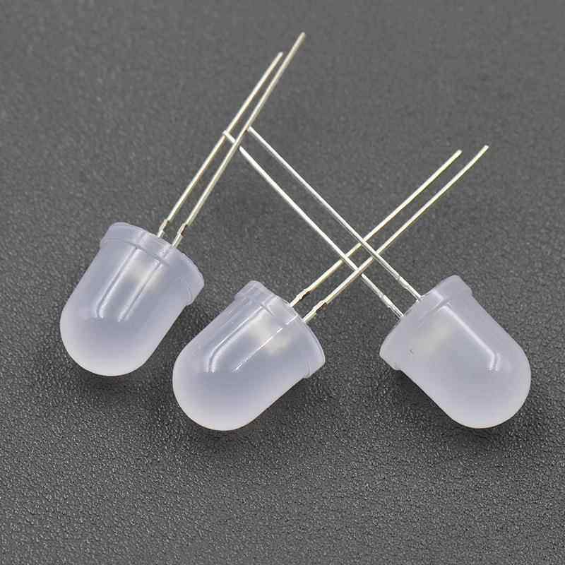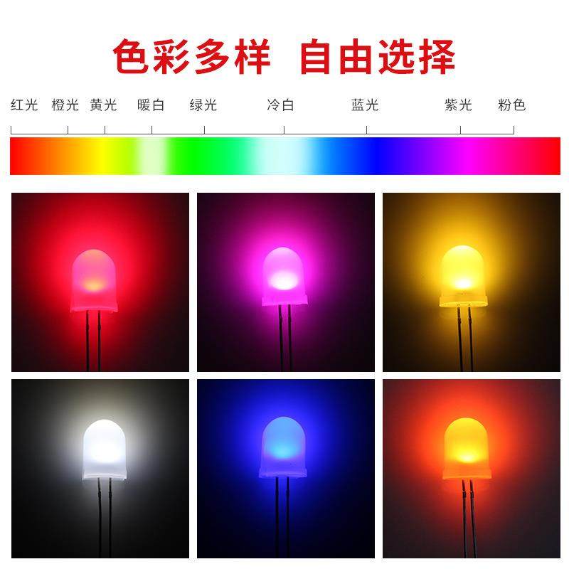 F10/10mm圆头雾状直插灯珠暖白光红绿黄光白光LED发光二极管