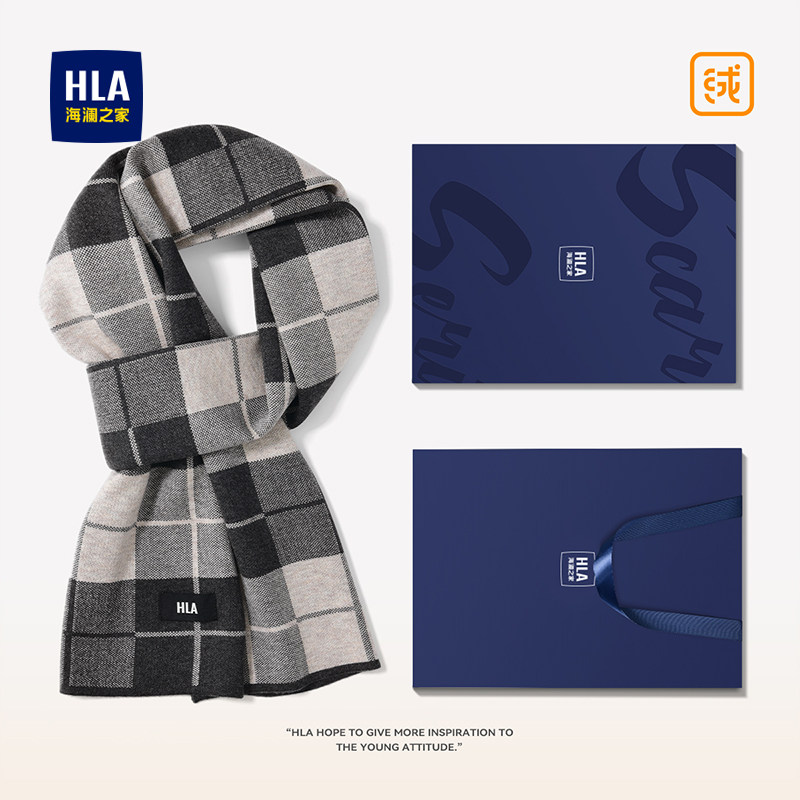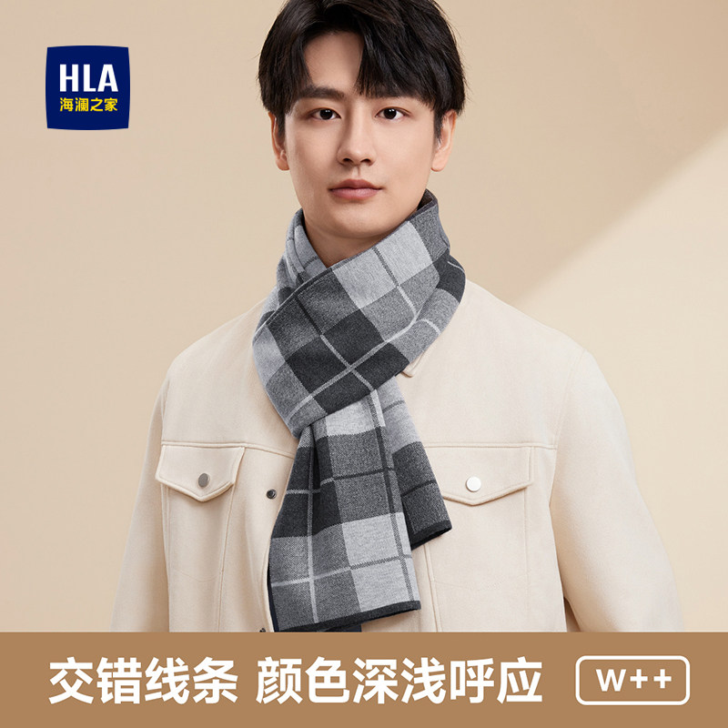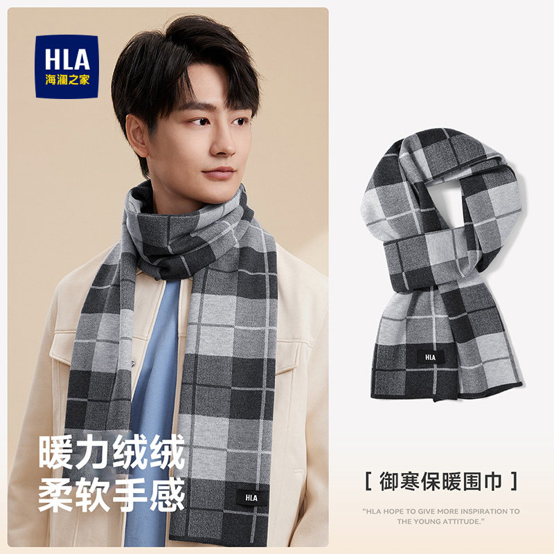 海澜之家围巾男士新款秋冬保暖防寒围脖户外骑行格子送男友礼物